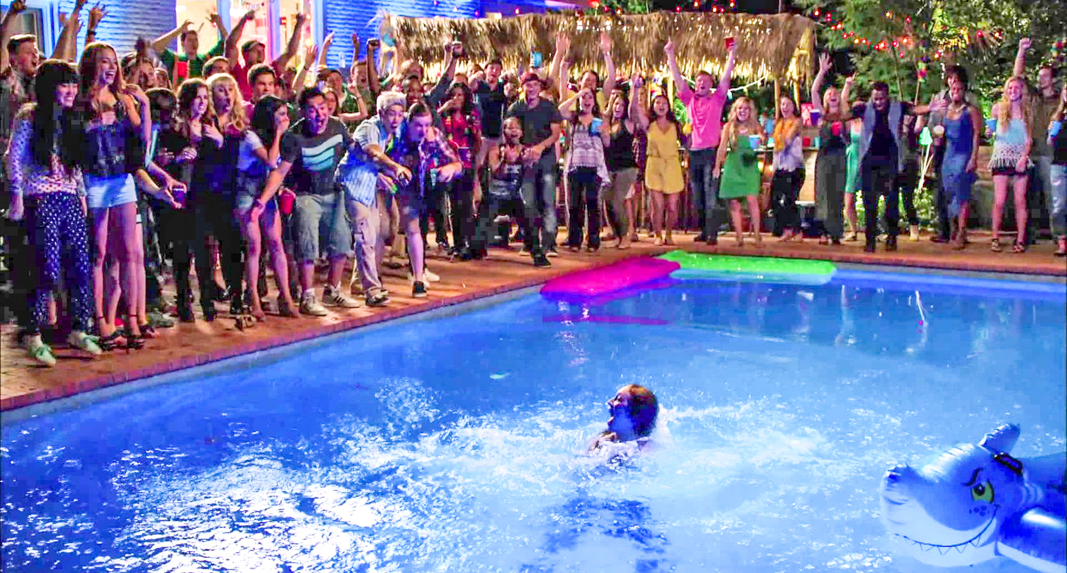 For eight late nights in 2014, the Meadow Lea house that would soon be Whitney and Matt LaNasa’s took on a totally different persona—that of a fraternity house for the movie Pitch Perfect 2. Set designers made sure the midcentury abode looked the part, incorporating dingy details from beanbag chairs and beer pong tables to greasy pizza boxes. Out back, the pool deck became party central, complete with members of the fictional Barden Bellas diving into the deep end fully dressed.