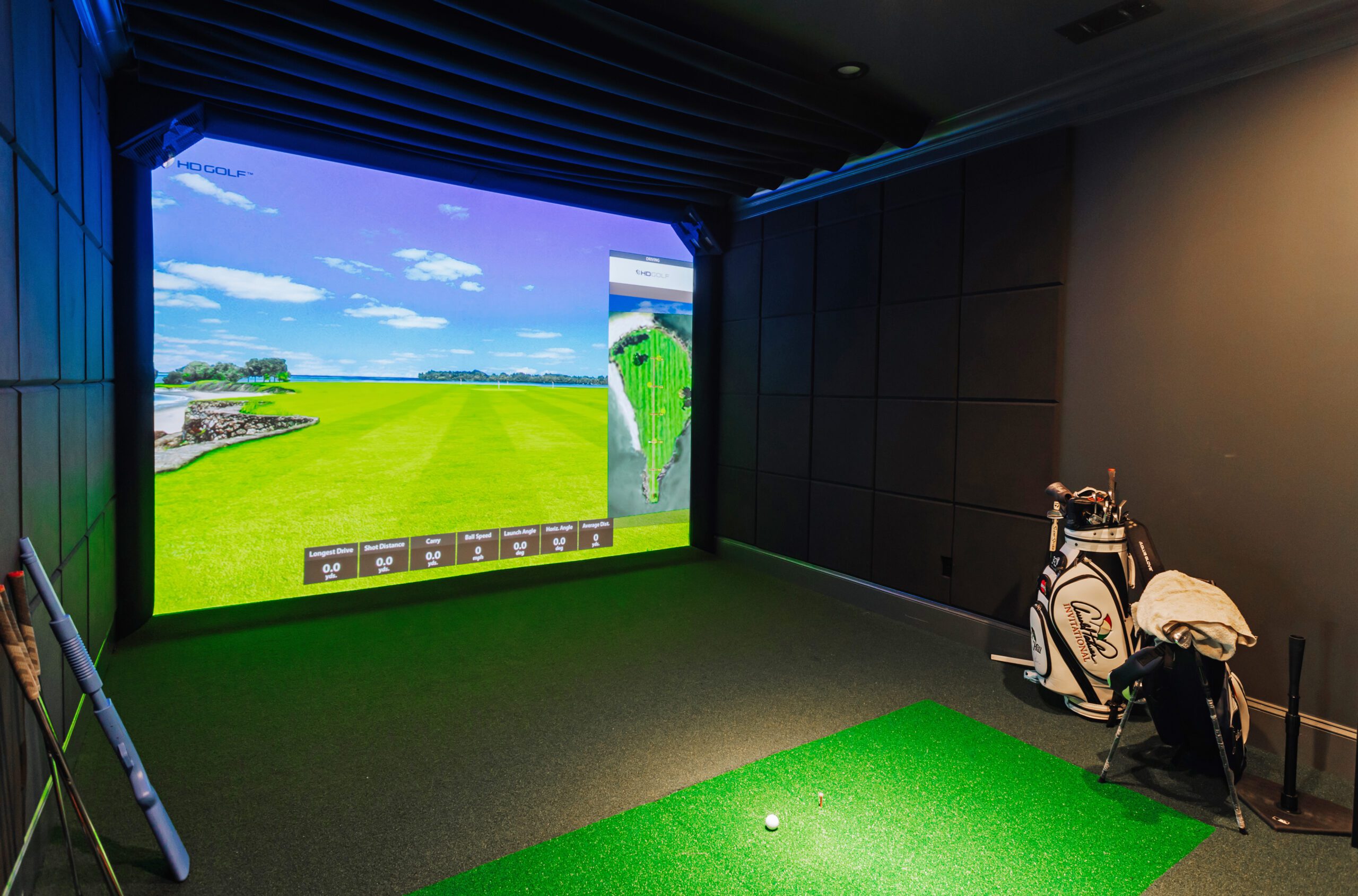 But kids are not the only people with their own space to play in this house. Upstairs, tucked away from the rest of the main living areas, is a special sanctuary conceived by Will to contain a bar, a golf simulator and plenty of space for the man of the house to play cards and watch baseball games with his buddies. “I wanted it to feel like you were walking into a completely different house when you went up there—with darker walls, darker countertops and darker furniture,” he says. “I originally wanted it to have plaid carpeting—that’s how far I wanted to push it. But Laura talked me out of that.”