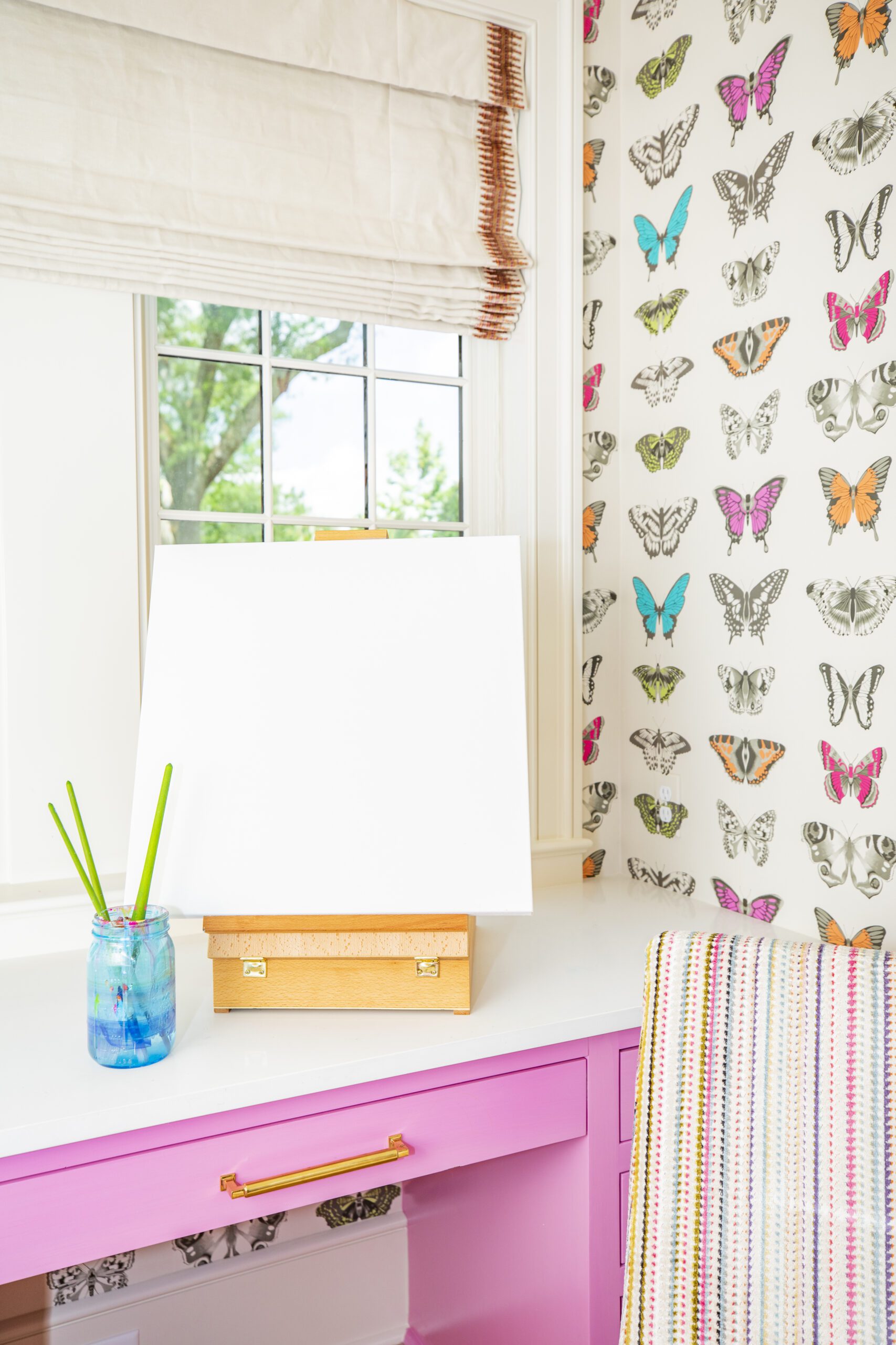 “This is strictly Kristina’s room, and we coined it the ‘craft room’ because she does more than just paint,” she says, “I wanted her to feel inspired by the space, and she’s a color-driven individual who appreciates patterns.”