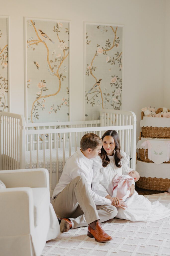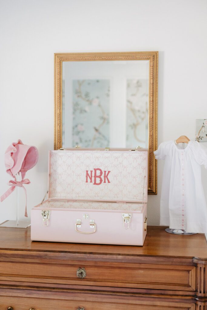 Emily says her favorite element within the room is the antique chest of drawers. “While I adore the wallpaper, I think the chest is my favorite because of its versatility,” she explains. It stopped her in her tracks while shopping at Revival Antiques in Scott, Louisiana. “It adds so much character to the room while serving as a changing station and storage space now. But it will easily transition into a piece that can be used for years to come in many different ways.”