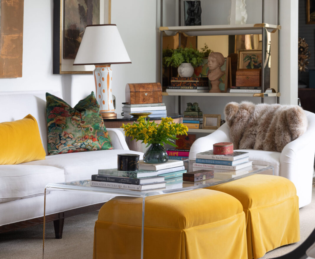 Hover over the image below to learn more about the carefully curated elements of this living room.