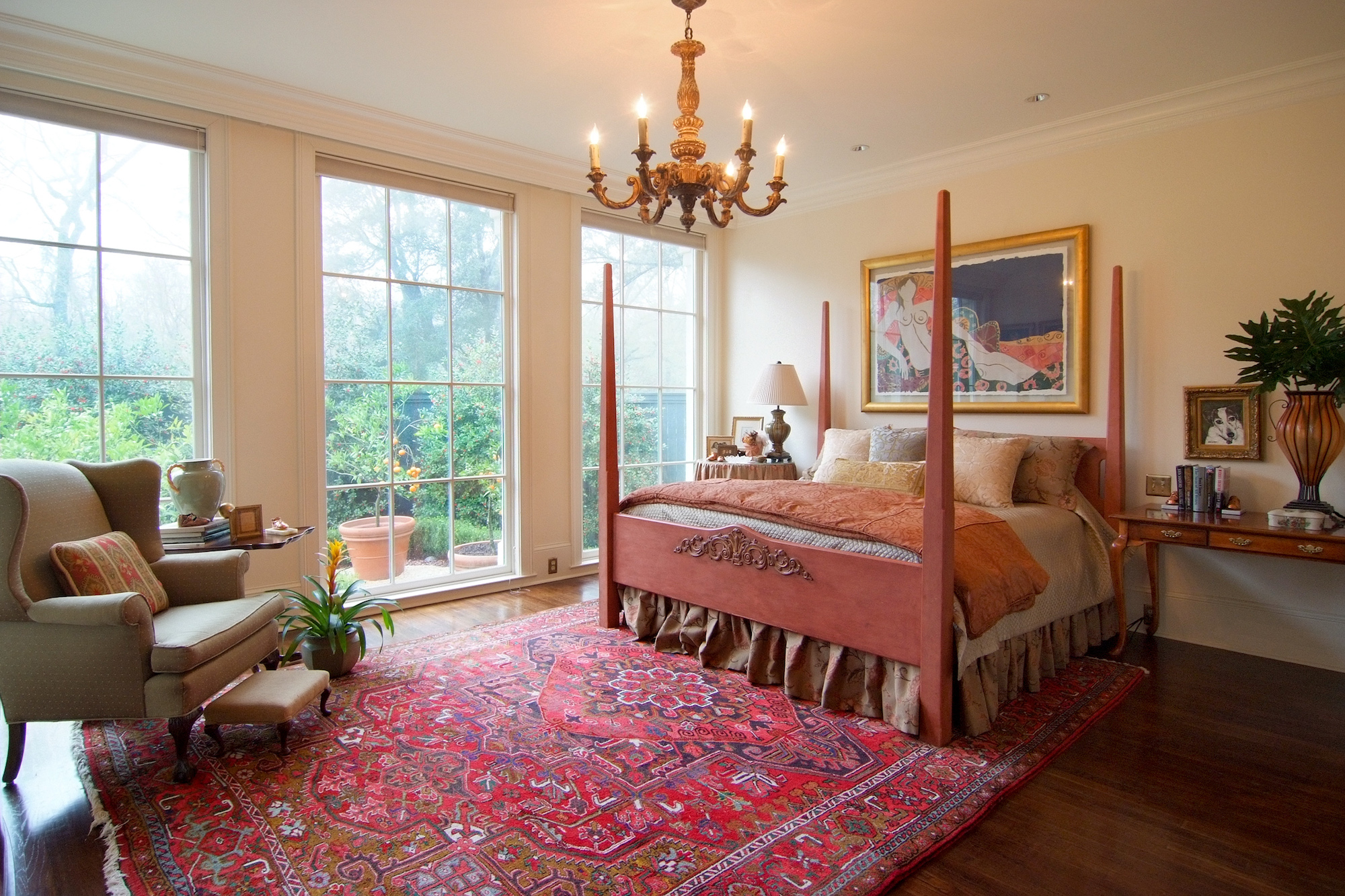 Furniture placement is a primary consideration. A bed that partially blocks a window can look awkward from a street view and may lead to uneven fading of fabric. A modern and minimalistic decorating scheme can be a good choice for rooms with dramatic panoramas just outside, ensuring that the emphasis stays on the view itself and not on a plethora of items inside. Another option is to select beach-inspired fabrics in sun-washed tones that give the room a resort vibe that ties into the exterior. To help connect the indoors and out even more, use natural colors on accessories –think sunny yellow throw pillows or green-accented abstract art that mimics the light through trees.