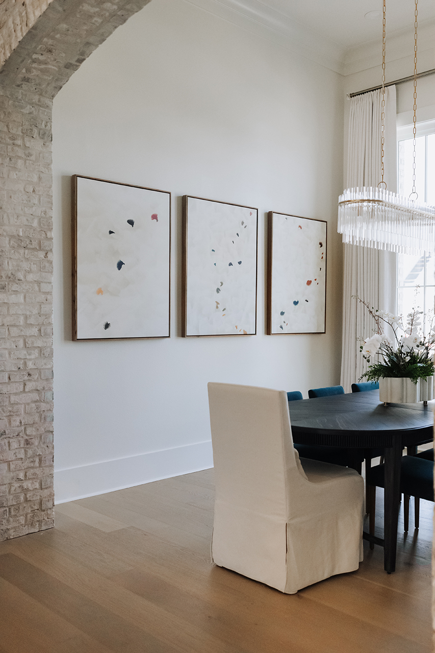 Lewis helped the Shellys hone in on the right brick for the arch-accented feature wall as well as on the home’s exterior. The couple settled on pale “Magnolia Bay” bricks with ivory mortar for a light look without the added step of whitewashing. “The ivory mortar made a huge difference in how the brick ultimately looks,” Lewis says. “If you go with gray mortar, it makes the brick look more gray. We also had to consider the paint color that we put on the other walls near it, which influences the way the brick appears.”