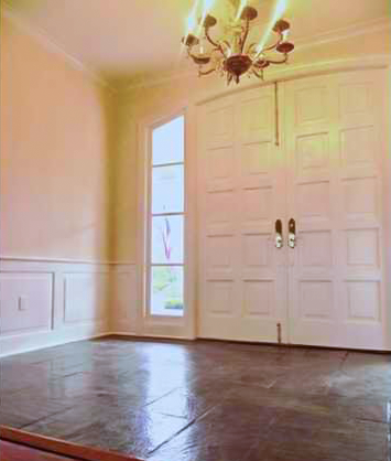 The couple had undertaken several renovations at their previous house, but this one needed fewer major moves to get it up to date. From the street, though, it was easy to see that new life was being infused into the abode. The red brick façade and green shutters were painted in light, creamy colors, and the heavy paneled wood front doors were removed and replaced with windowed metal doors that allow the sun to stream in. “We wanted to put a modern touch on this older house,” Kristin says.