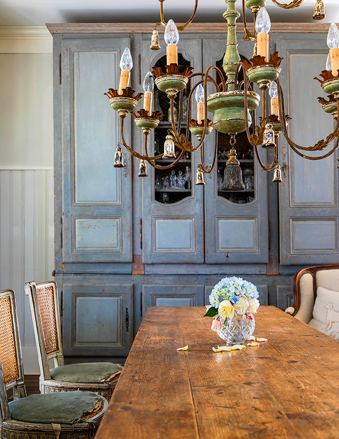This belief is exactly why no prefabricated house filled with designer-selected furniture and accessories would do for this duo. The home itself had been well built by the previous owner, with finishes and design that the Hayneses appreciated: heavy wood doors from The Bank Antiques in New Orleans, a wall of windows procured from former Italian eatery Cipriani’s off College Drive, and casement windows from Huey Long’s house on University Lake. Layers of history were already in place, even though the house itself was only 25 years old. It was time for Joanna and John to add layers of their own.