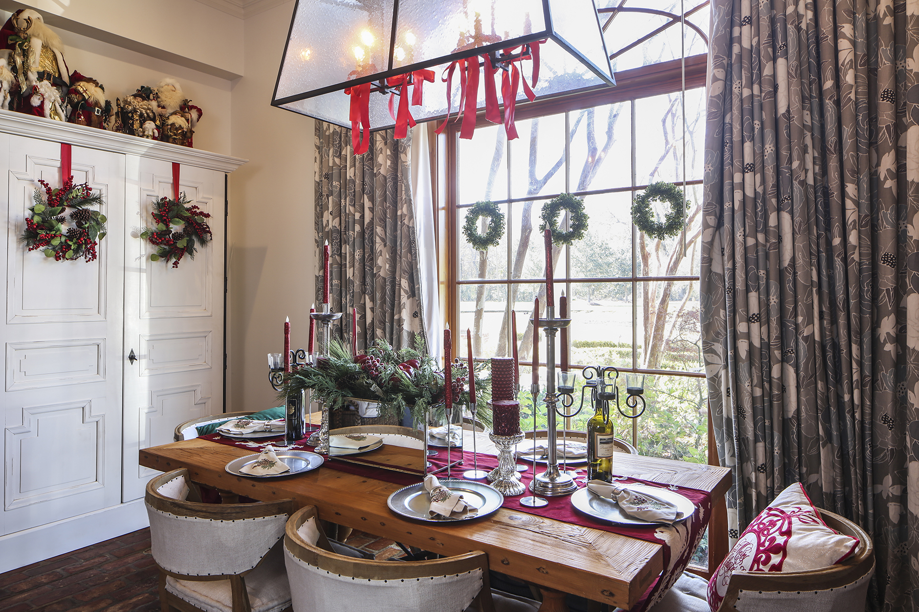 But not just any artificial tree will do—she tends to select those designed to resemble Douglas or Noble firs. “They look the most real,” she says. “I sometimes add scented sticks from Louisiana Nursery and even a few fresh clippings if they’re having a party; that makes it really smell like Christmas.”
