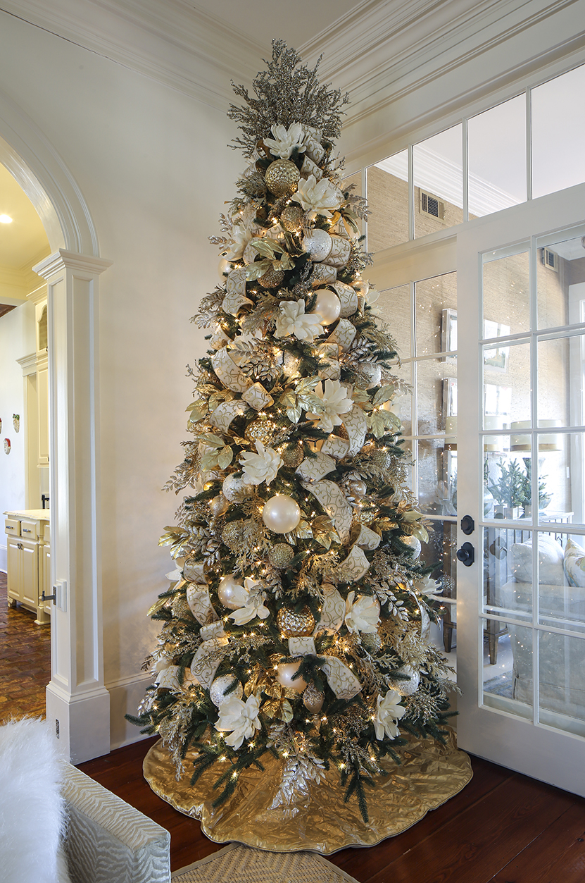 Over the past several years, the family has also firmly established a new holiday tradition: the transformation of their Zachary home into a full-fledged winter wonderland. There are dozens of Christmas trees indoors and out, yards and yards of shimmering ribbons and garlands, and plenty of fluffy “snow.”