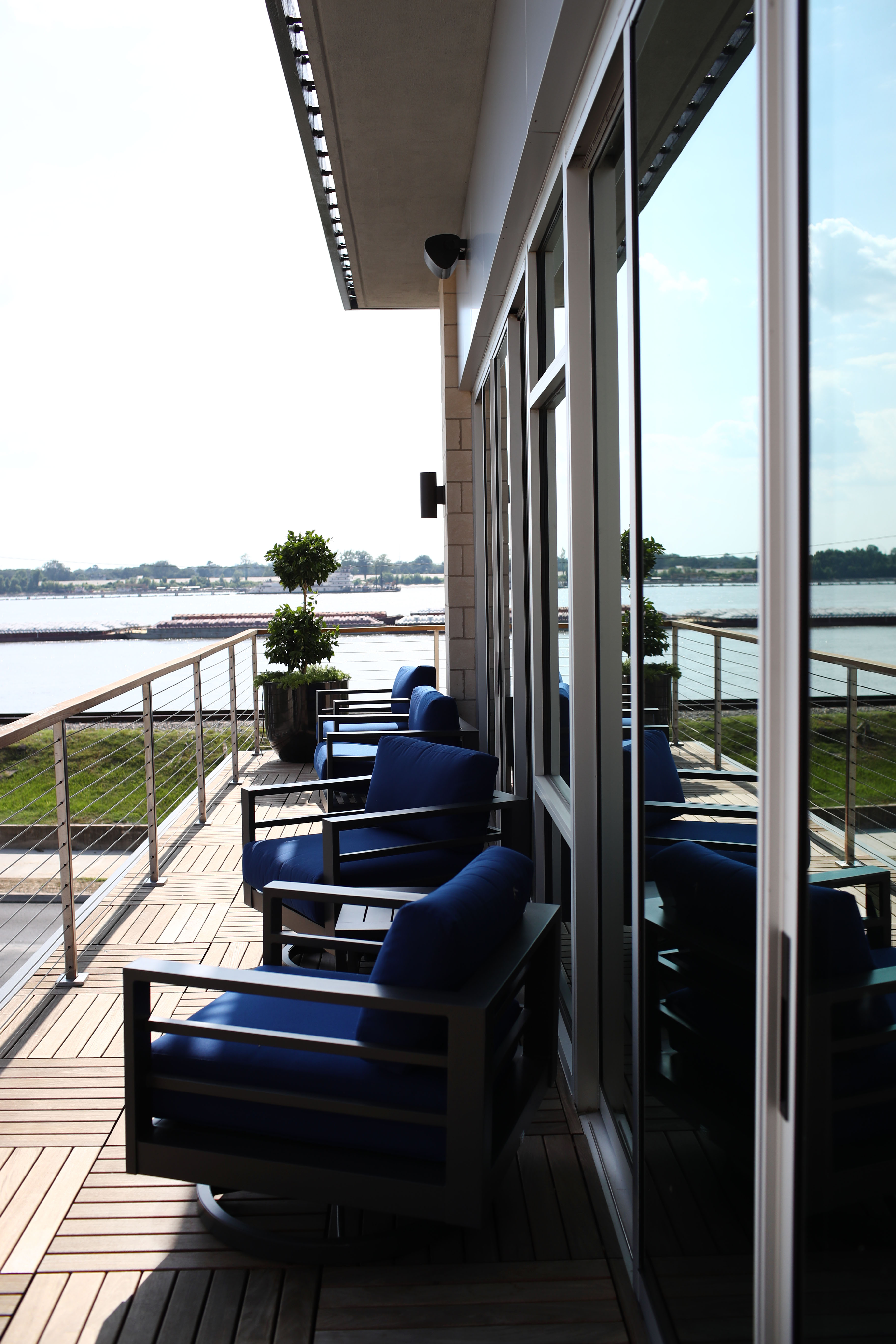 January 2019 cover subjects John and Marty Engquist enjoy views of the Mississippi River and downtown Baton Rouge from their contemporary condo. Photo by Marianna Massey.