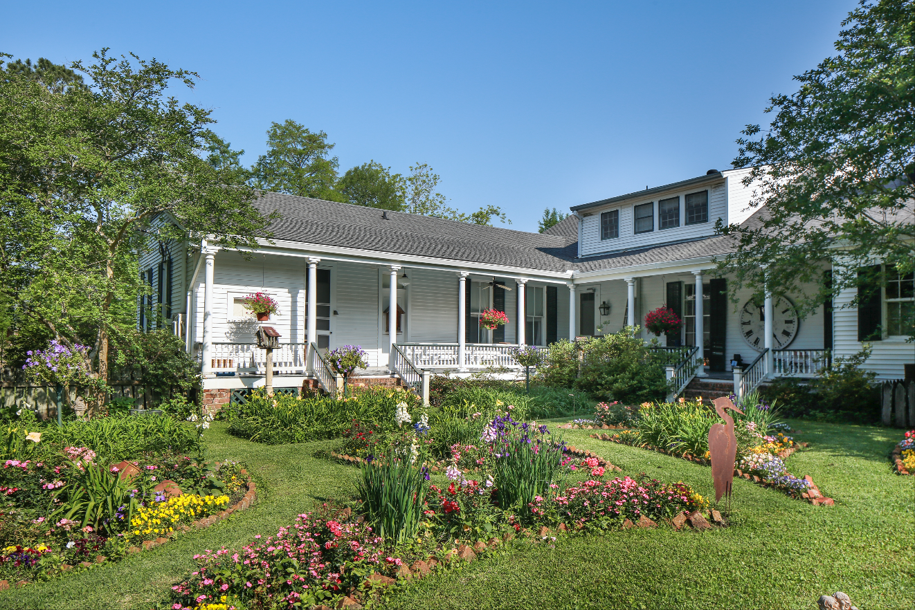 Featured as the May 2018 cover story, the James Grace House’s expansive porch overlooks its vibrant garden. Photo by Melissa Oivanki.