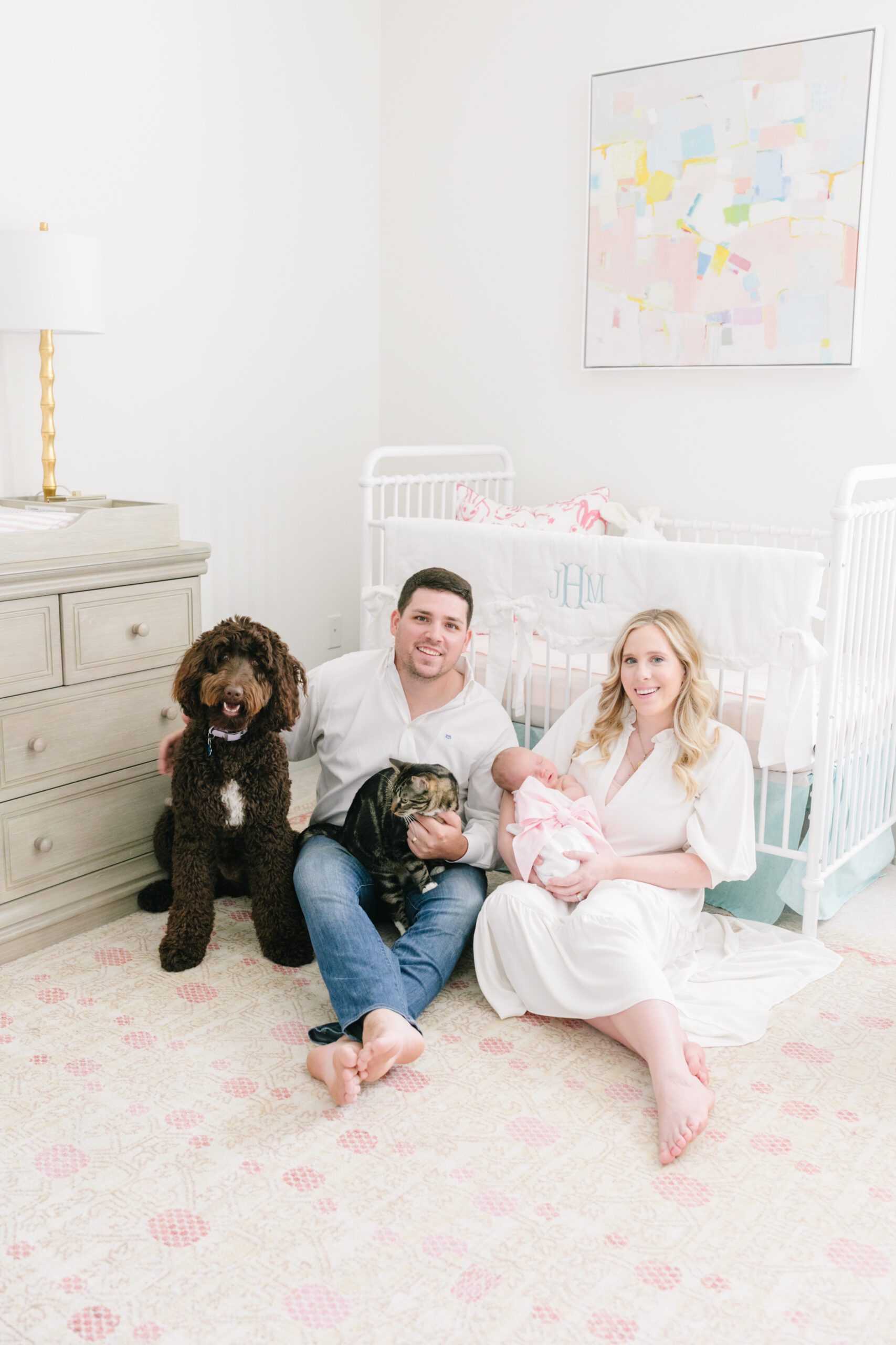 A painting from new baby Jules’ grandmother. A poem from parents Claire and Taylor Harrell’s wedding. A candle that was lit during Jules’ delivery. An array of items—old and new—came together in this pastel nursery to create a space that is as beautiful as it is meaningful. “Anyone who knows me well knows that I am extremely sentimental,” Claire says. “We wanted to be able to use the items in Jules’ room to teach her all about the people behind them, whether it’s family, friends or inspirational people in our lives.”