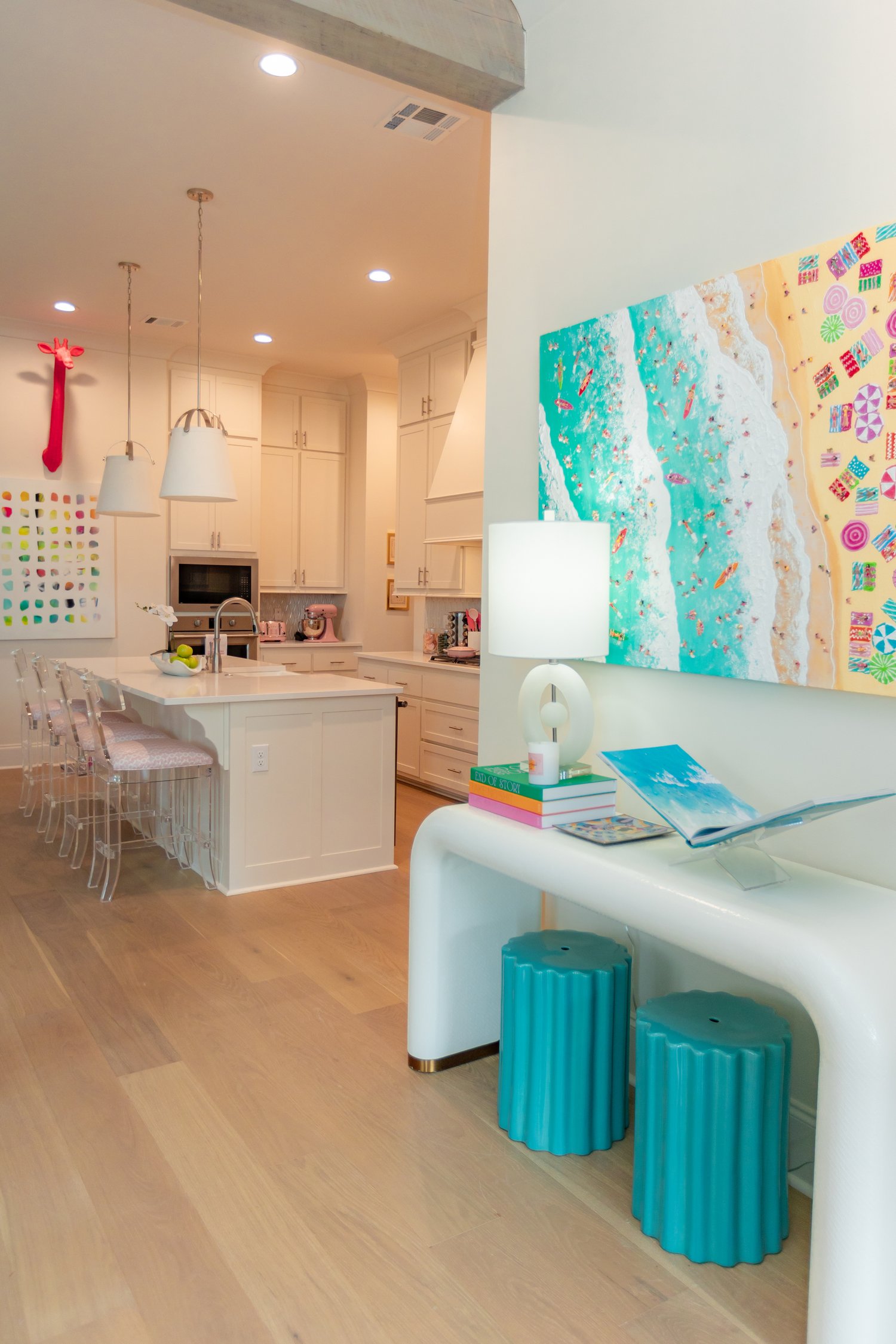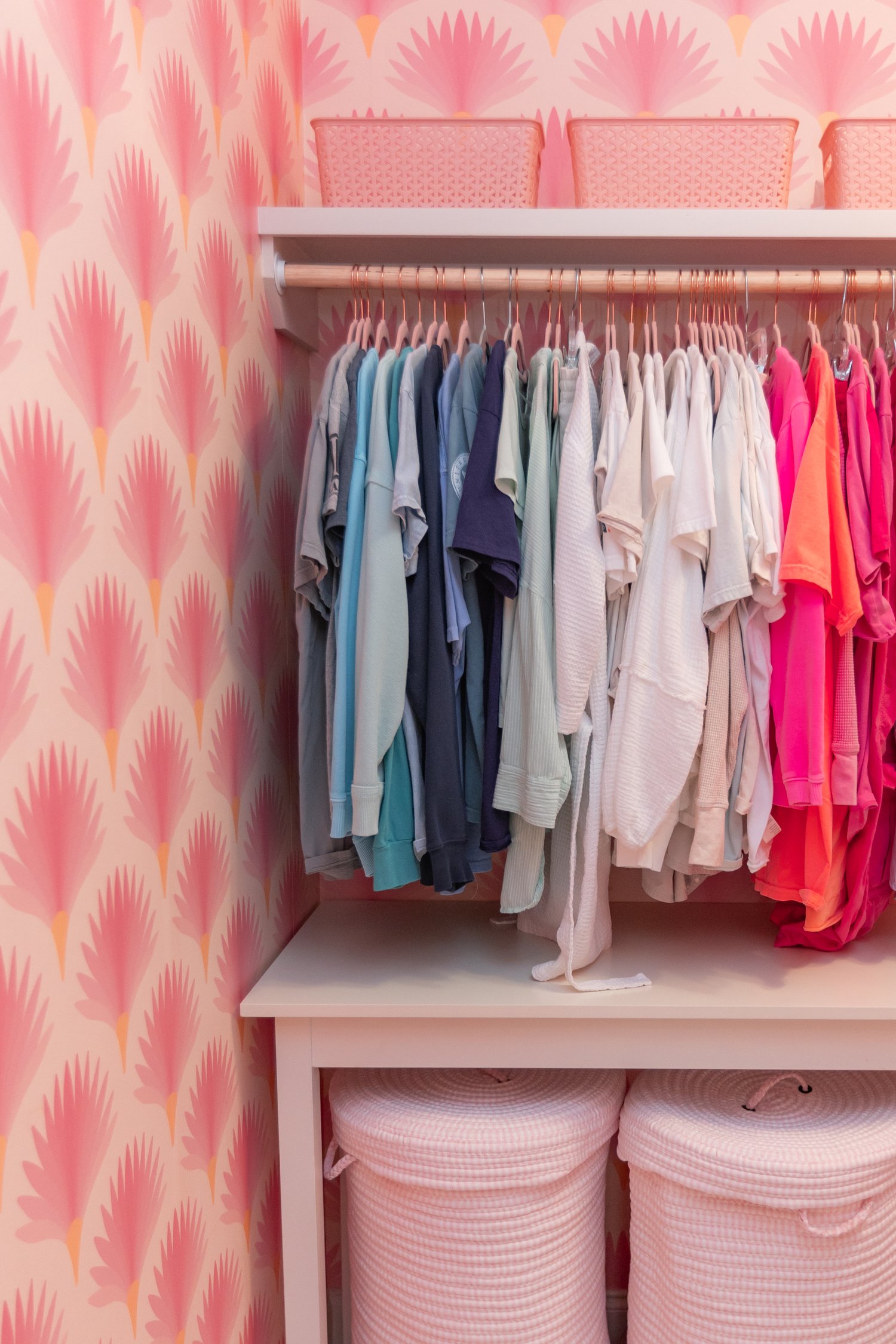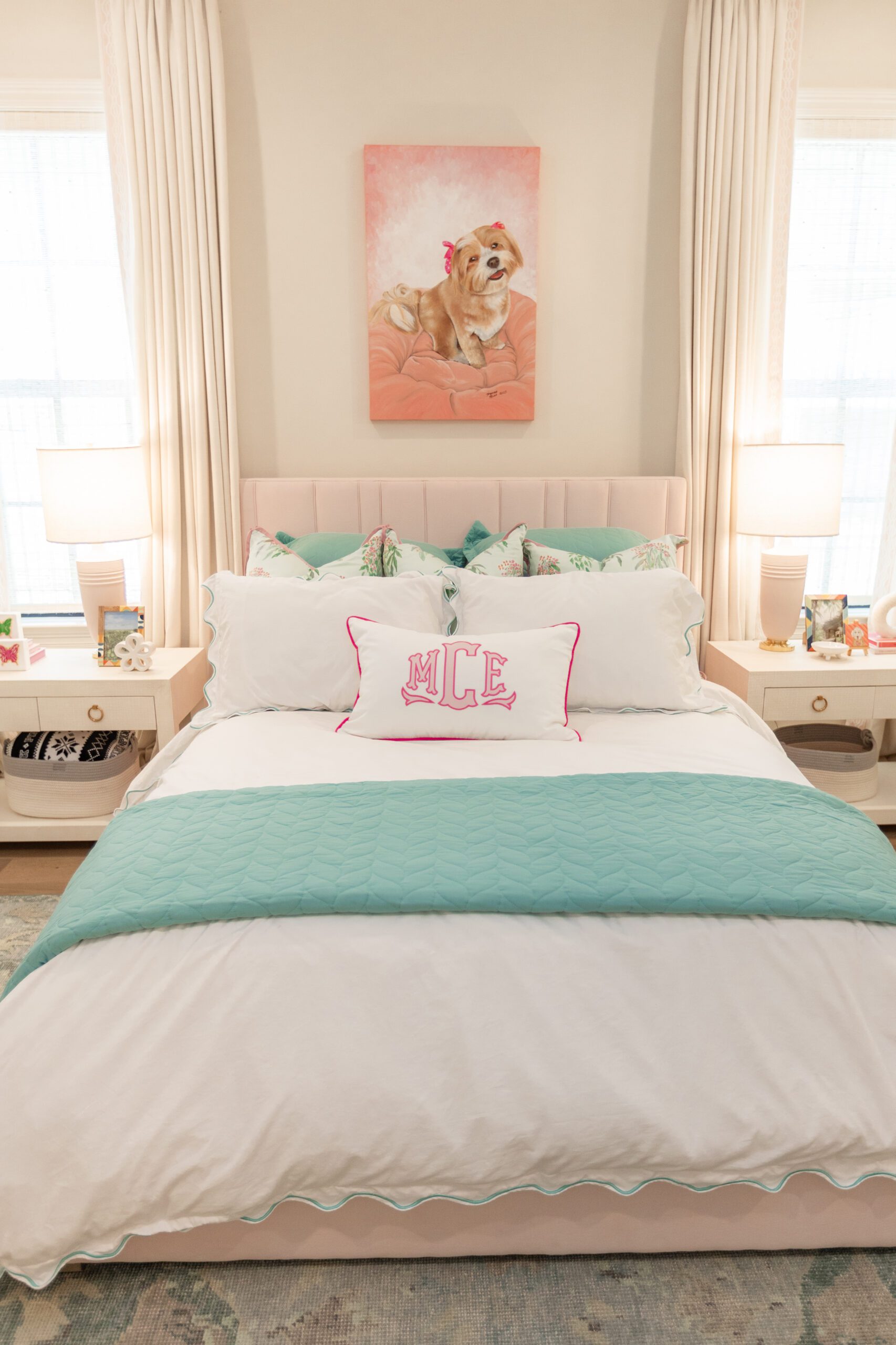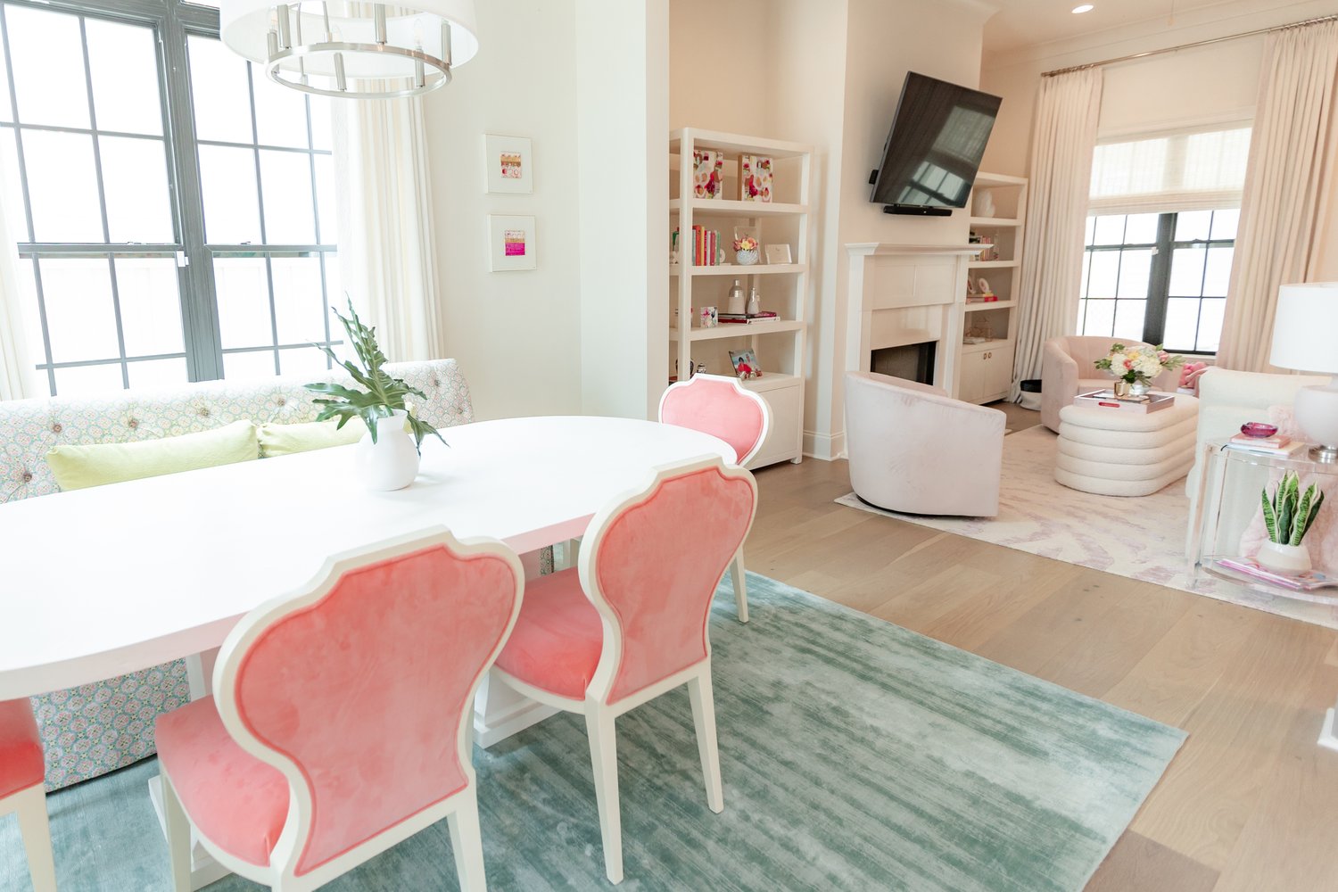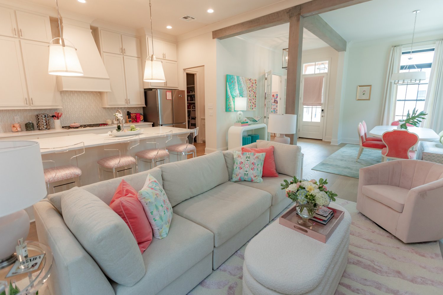 “Pink is our client’s absolute favorite color. To be successful in having a fun yet sophisticated design, we chose to incorporate other colors that compliment all the shades of pink in the design,” said Becky Walker, principal designer and owner of The Design Studio. “When it came to the different textiles like fabrics and wall coverings, we knew the options were endless, but we wanted to find patterns and color combinations that would work in her space for the foreseeable future.”