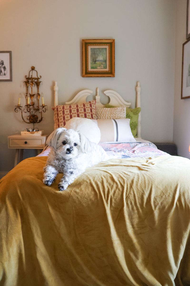 Just like in their own houses, dogs are invited to make themselves at home on Britt’s plush furniture. And he doesn’t sacrifice design for dog-friendliness. The space is complete with velvet fabrics, a vibrant rug and plenty of artwork. Pho