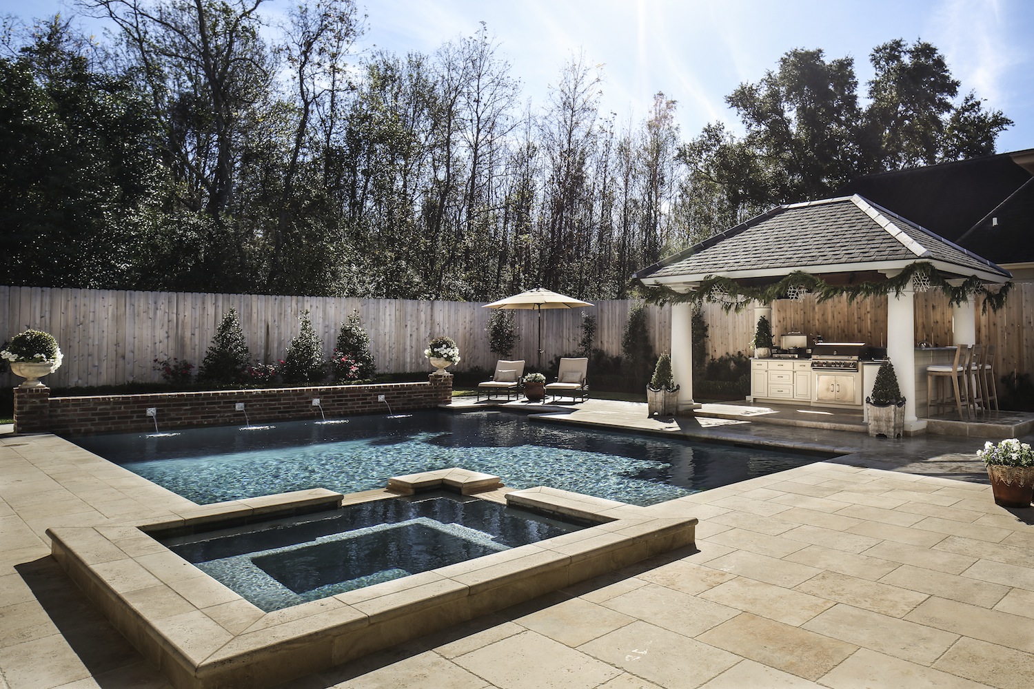 A heat pump services the air conditioning and heating system. Enjoy an in-ground fiberglass pool with cool decking, waterfall and a professionally built retaining wall.