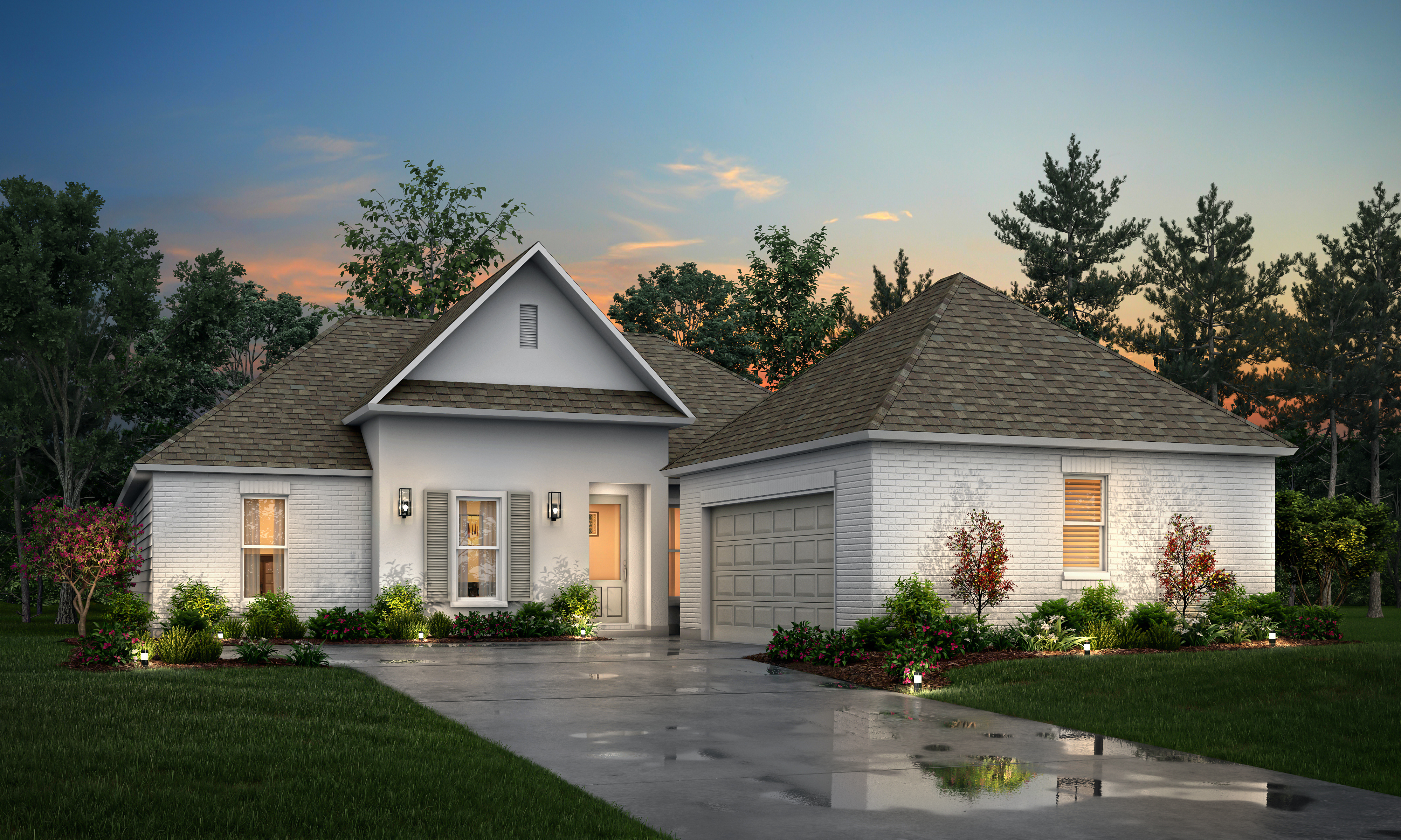 Parks at Water Oak is an exclusively built community from Alvarez Construction Company in Ascension Parish on Germany Rd. Modern contemporary details meet traditional architecture with sleek electric lanterns. The walkable neighborhood has sidewalks, a pond, multiple green spaces, and curb and gutter.