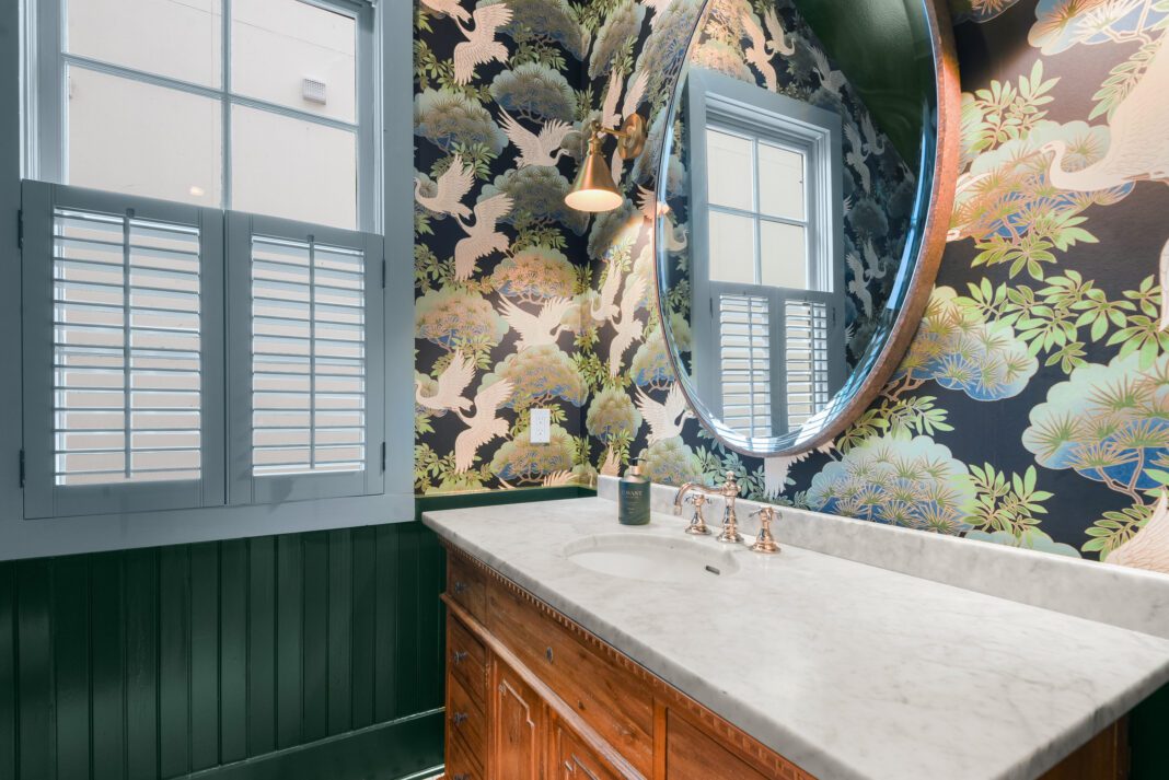 An easy way to dip your toes into bold design is to wallpaper a powder bath. Streamline carries a wide selection of wallpaper and will source the perfect pattern for you.