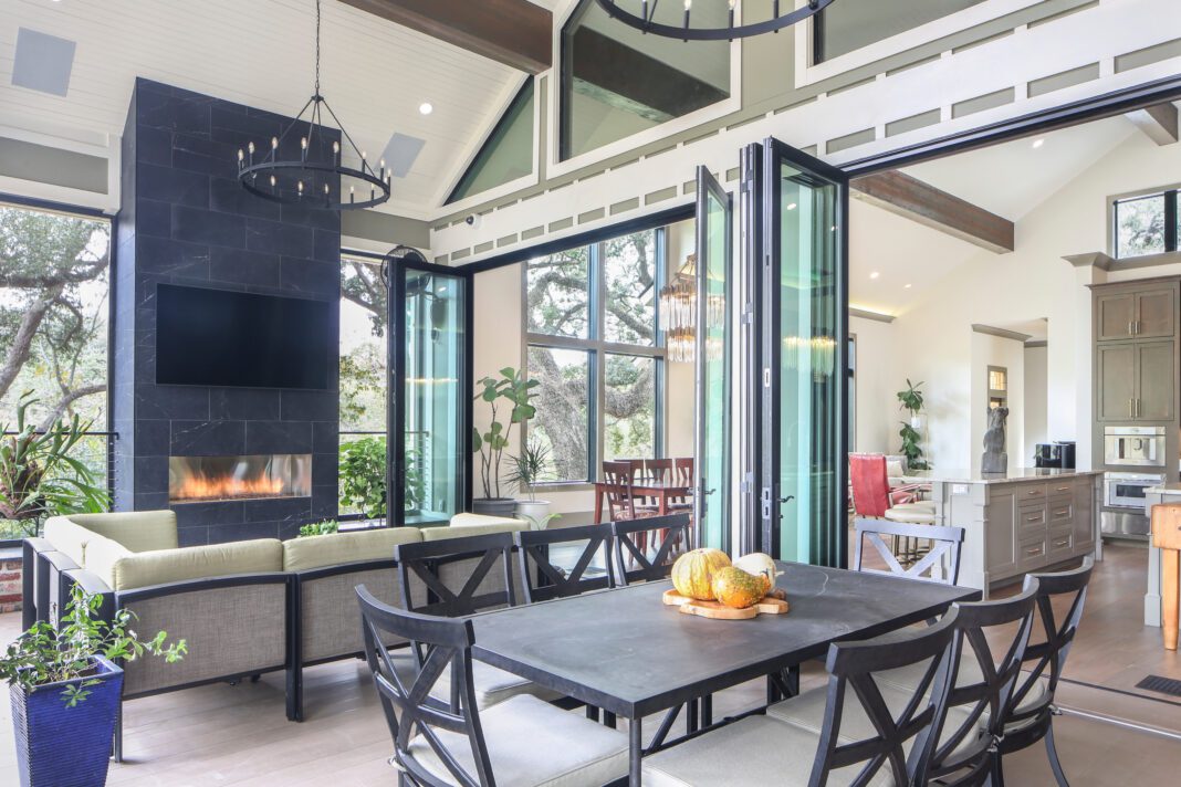 - Doors. There are many door options that can be used such as sliding, bifold, hinged or retractable glass walls. The wider the opening to your outdoor space, the more it will feel like part of your indoor space. Also, the flow back and forth will move freely.