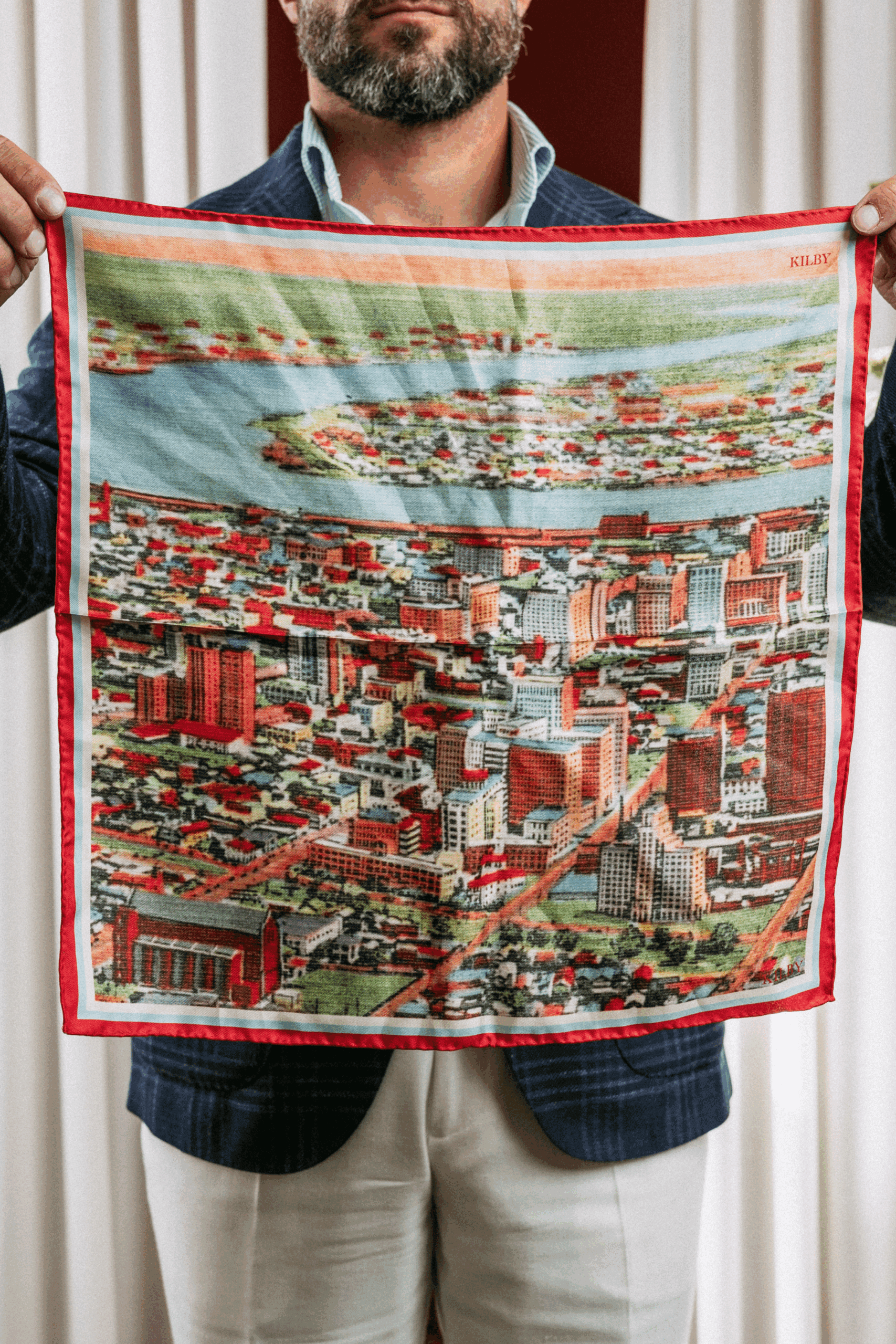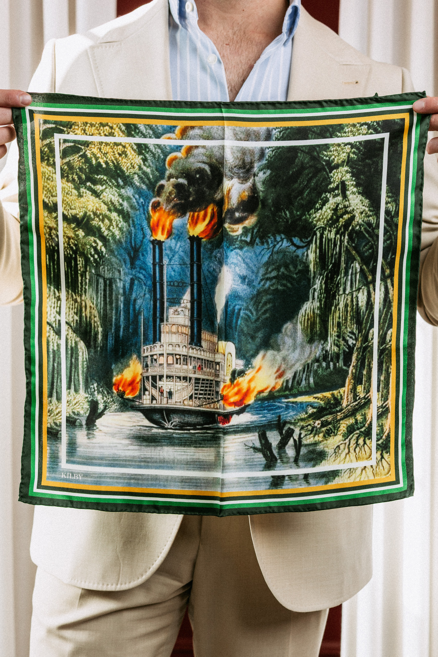 Kilby, a custom suiting atelier in New Orleans, has released a line of limited edition silk pocket squares depicting recreations of five different postcards. Ranging in date from 1860 to 1940, the artwork captures the magic and rich history of the Crescent City.