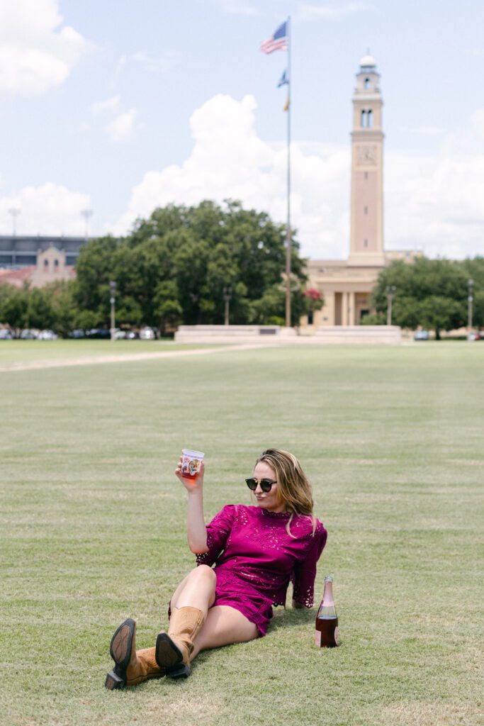 With help from local boutiques, and model Lilly Chastain, this year, tailgating attire is better than ever. Save your jersey and jean cut-offs for away games. It’s time for dresses, sets and even sequins to have their time under the lights of Tiger Stadium. Geaux Tigers!