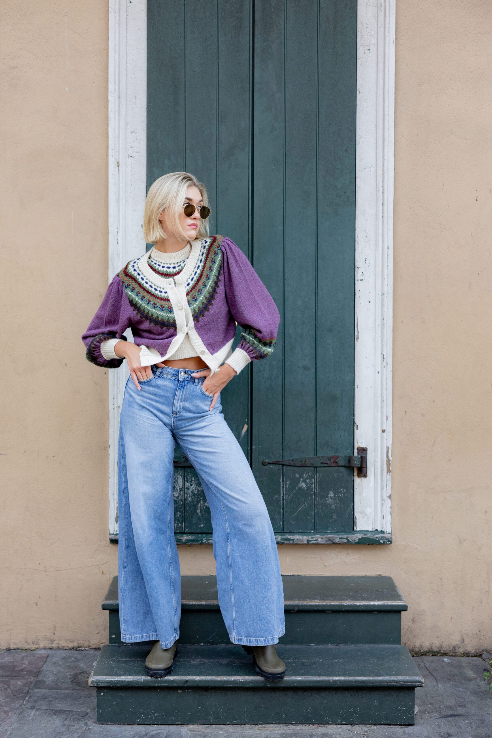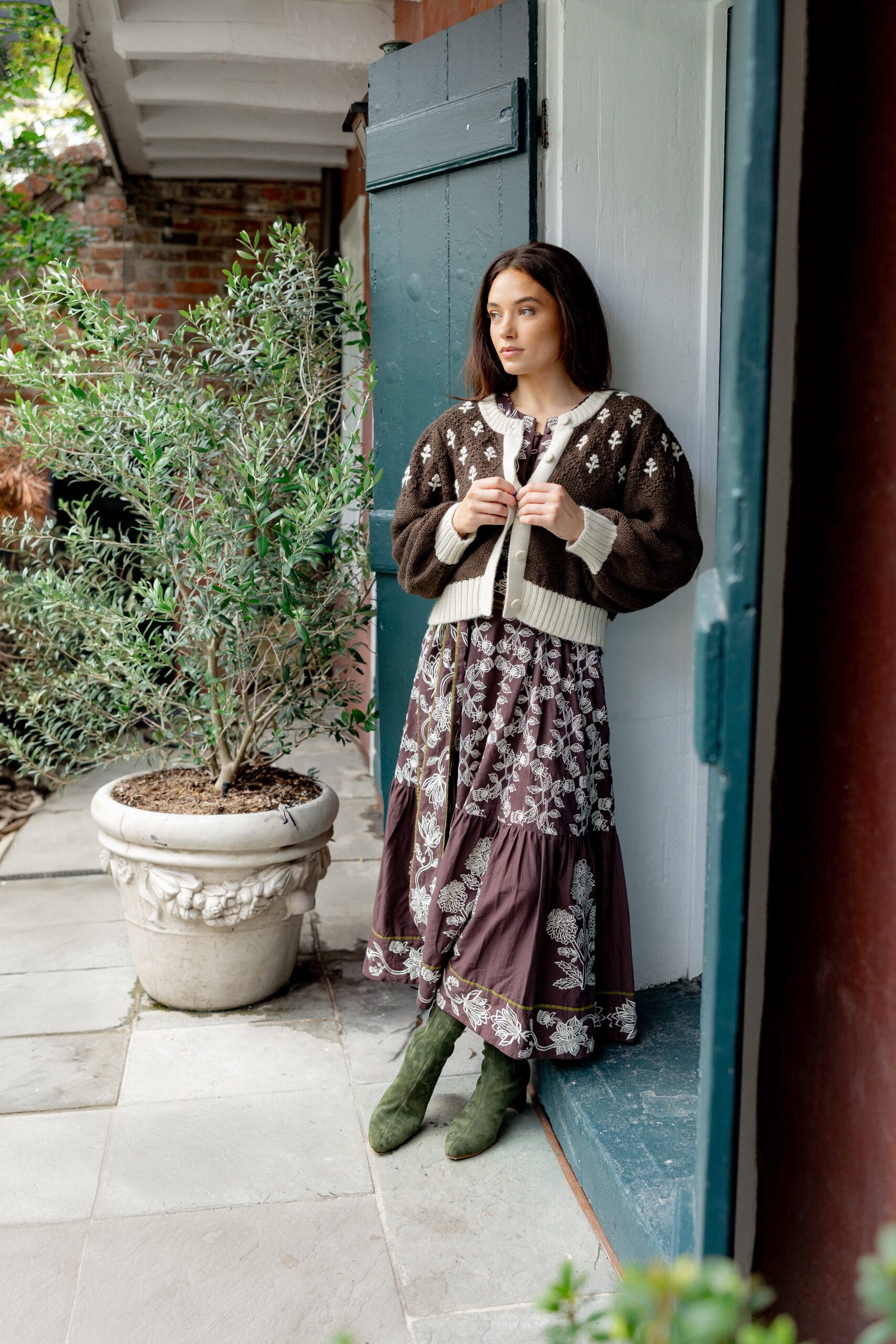 First of all, we had to design this Heritage Knitwear Capsule with the same amount of detail and love for color, pattern and texture that our line is known for. We always adore mixing and combining exuberant elements. So, while all of the thread colorways and patterns were carefully selected and hand-dyed to work back with our collection, they also pair perfectly with a chic denim skirt or your favorite pair of jeans. Versatile pieces with personality are key.