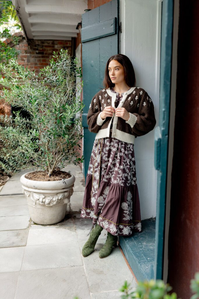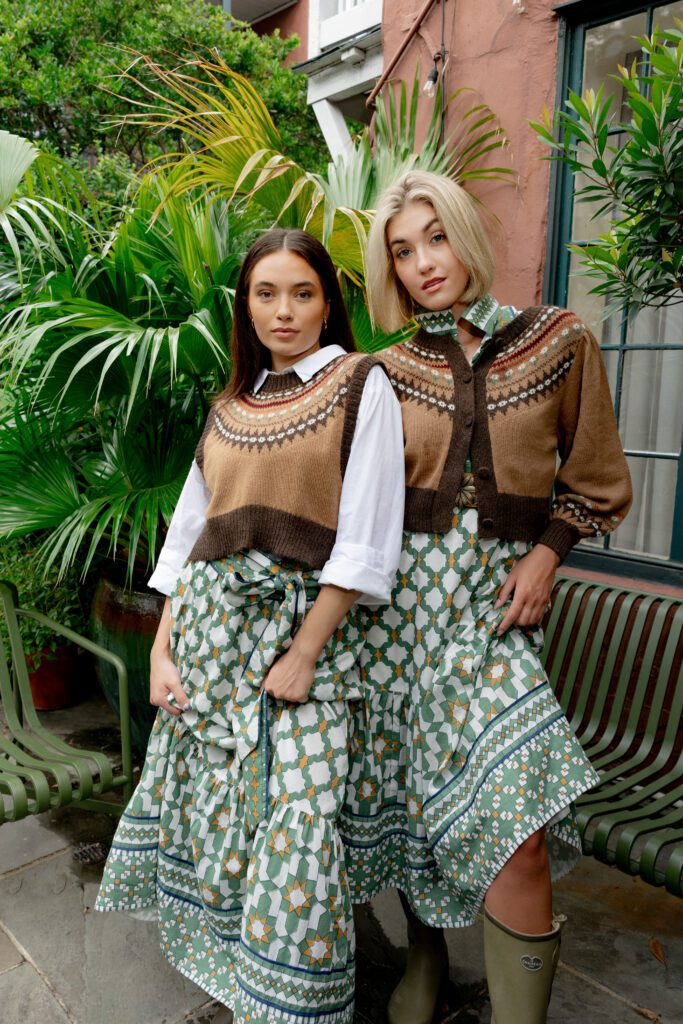 I love trying new categories that make sense for the brand. I have been a lover of fine knitwear forever. I adore layering our joyful, pretty dresses with sweaters and personally wore my Fair Isle sweaters in the ’80s on repeat! I missed them and really wanted our brand to reimagine them.