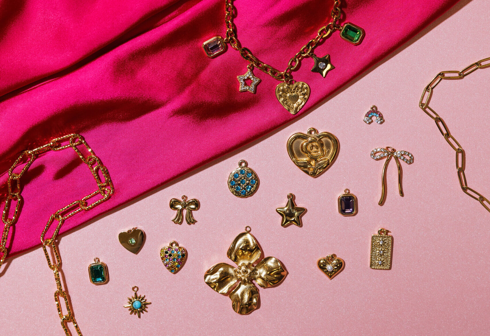 Forever Lillies, known for its permanent jewelry, has also dipped into the charm trend with non-permanent, 18-karat gold-plated chains with a rotating selection of charms.