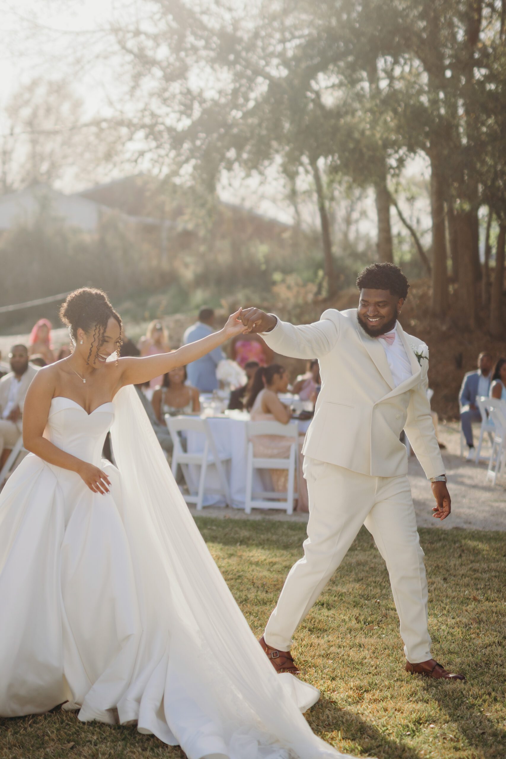 In that same spirit, she took the lead on planning the wedding herself. As Miss Louisiana 2020 and a Miss USA semi-finalist, she’s no stranger to picking the perfect gown, hairstyle and makeup—and she’s no stranger to lighting up a room with her radiant confidence.