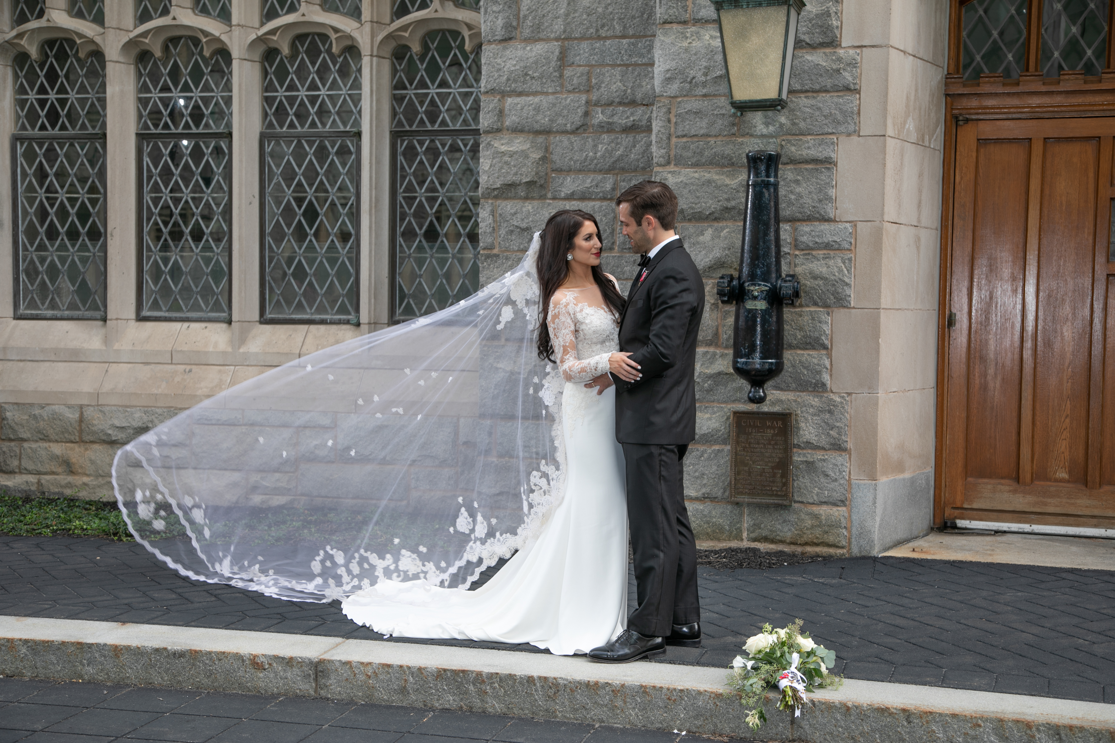 High above the cliffs of the Hudson River, the U.S. Military Academy at West Point was the ideal destination for the wedding of Christen Tanner and Zachary Foster. Zach graduated from the academy in 2007 and served eight years in the U.S. Army as a helicopter pilot and captain. He also completed a tour of duty in Afghanistan. Christen carried several of Zach’s medals on her bouquet, including a Bronze Star and Aviation Wings. They exchanged nuptials at the historic Cadet Chapel, and a reception was held at the Thayer Hotel. They used a saber sword to cut the cake, and Zach gave gold West Point lapel pins to those in the wedding party who were not former military officers. Photos by H & H Photography.