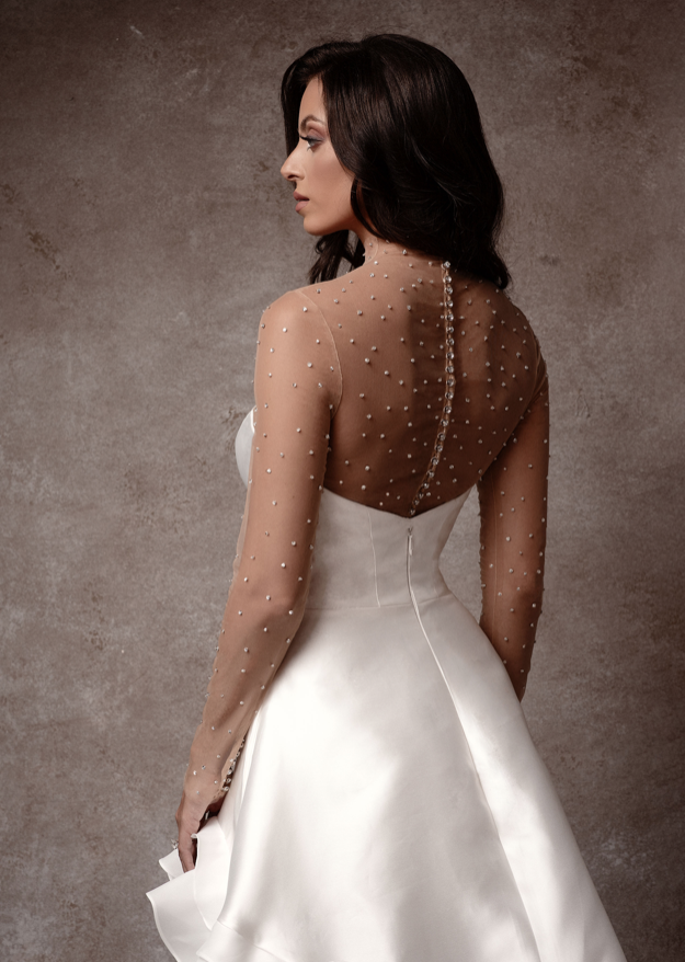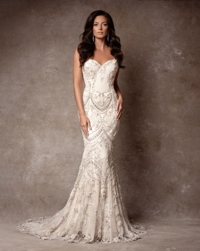 Just last week, Taheri’s newest gowns were spotlighted with a show at The Edition Hotel. Complete with pearl embellished gloves, floral appliqués and a healthy dose of statement sleeves, the collection is a welcome addition to the repertoire of gowns already available at bridal shops such as Kleinfeld–yes, that Kleinfeld–and Le Jour Couture in Lafayette.
