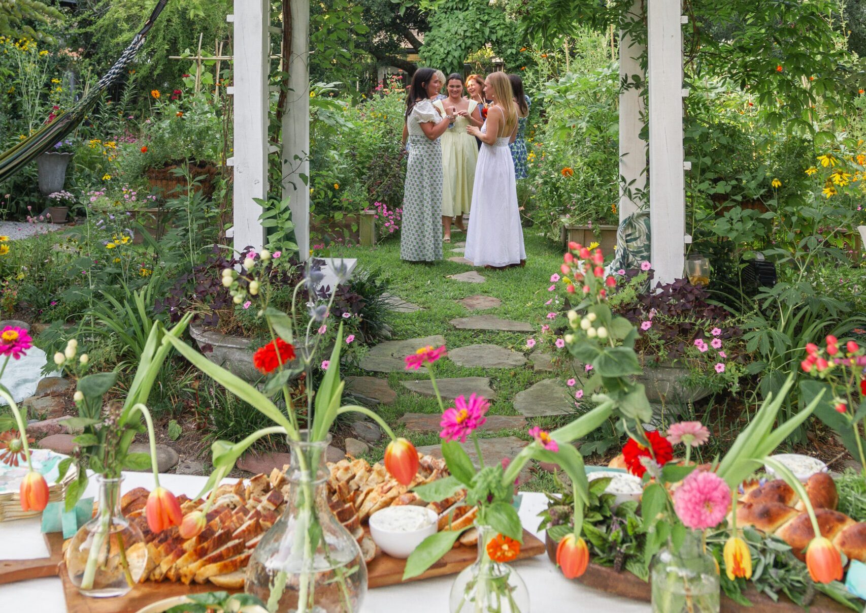 After fixing an Aperol spritz upon arrival, guests made a plate full of homemade food and found a place to sit in the garden. “For a while we all just visited while eating,” says Charlet, noting that the homemade lemon thyme lavendar ice cream cookies were the most popular offering. “Then, everyone moved moved to the backside of the garden where we sat on picnic blankets and I opened my gifts.”