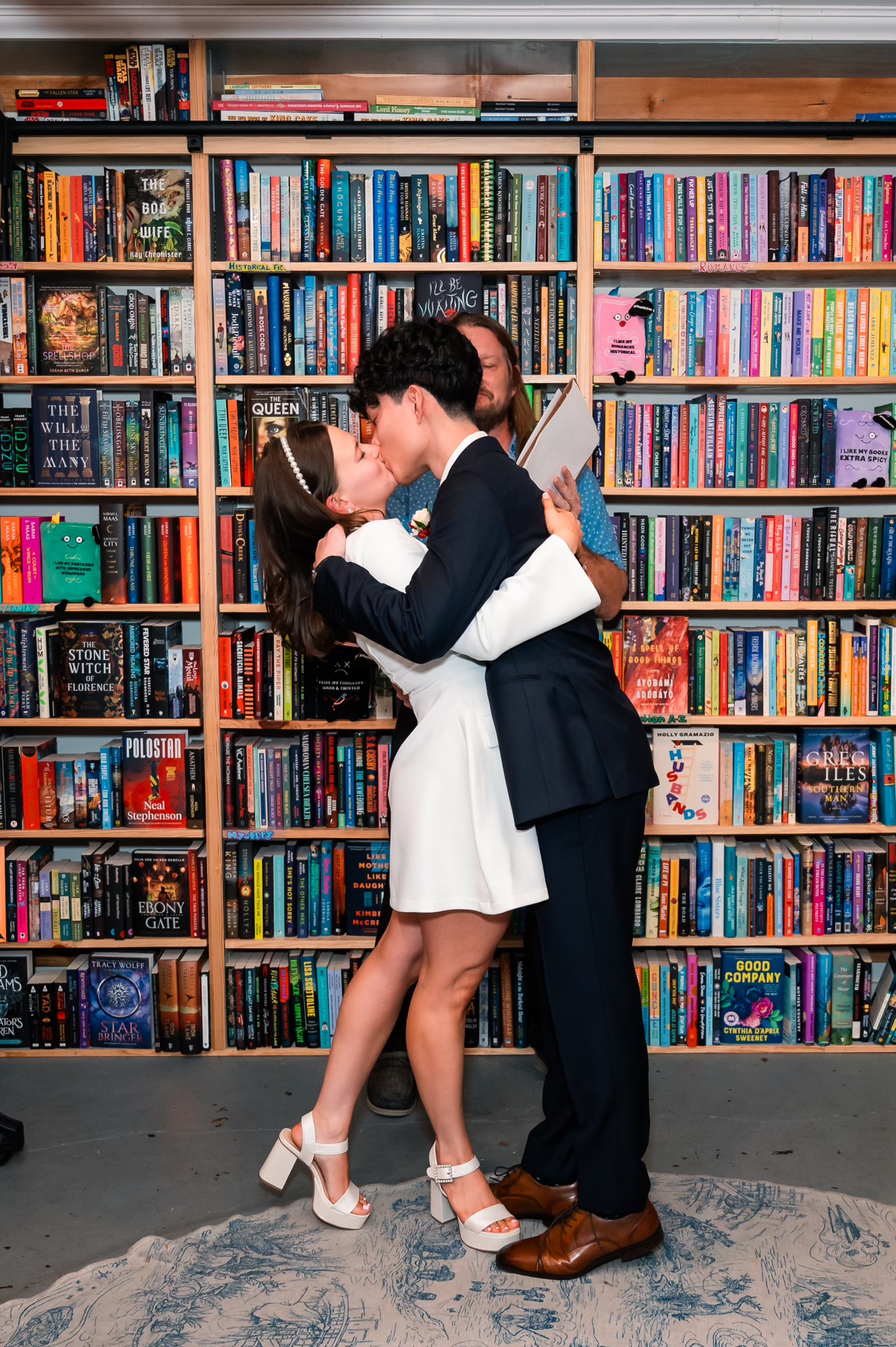 In 2022, Caroline returned to Baton Rouge and they began planting roots in the Capital City. One of their favorite hangouts quickly became Red Stick Reads. Initially, the couple was planning a courthouse wedding, but she learned that store co-owner James is an ordained wedding officiant during a visit to the local bookstore. He agreed to marry the couple under one condition—the ceremony take place in Red Stick Reads. Just as the couple instantly knew their connection was something extraordinary, Caroline recognized that this idea was just as remarkable.