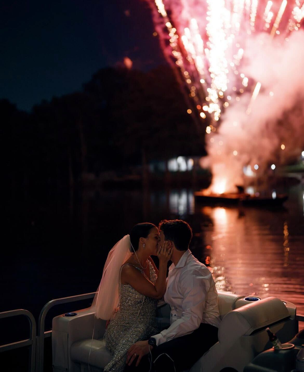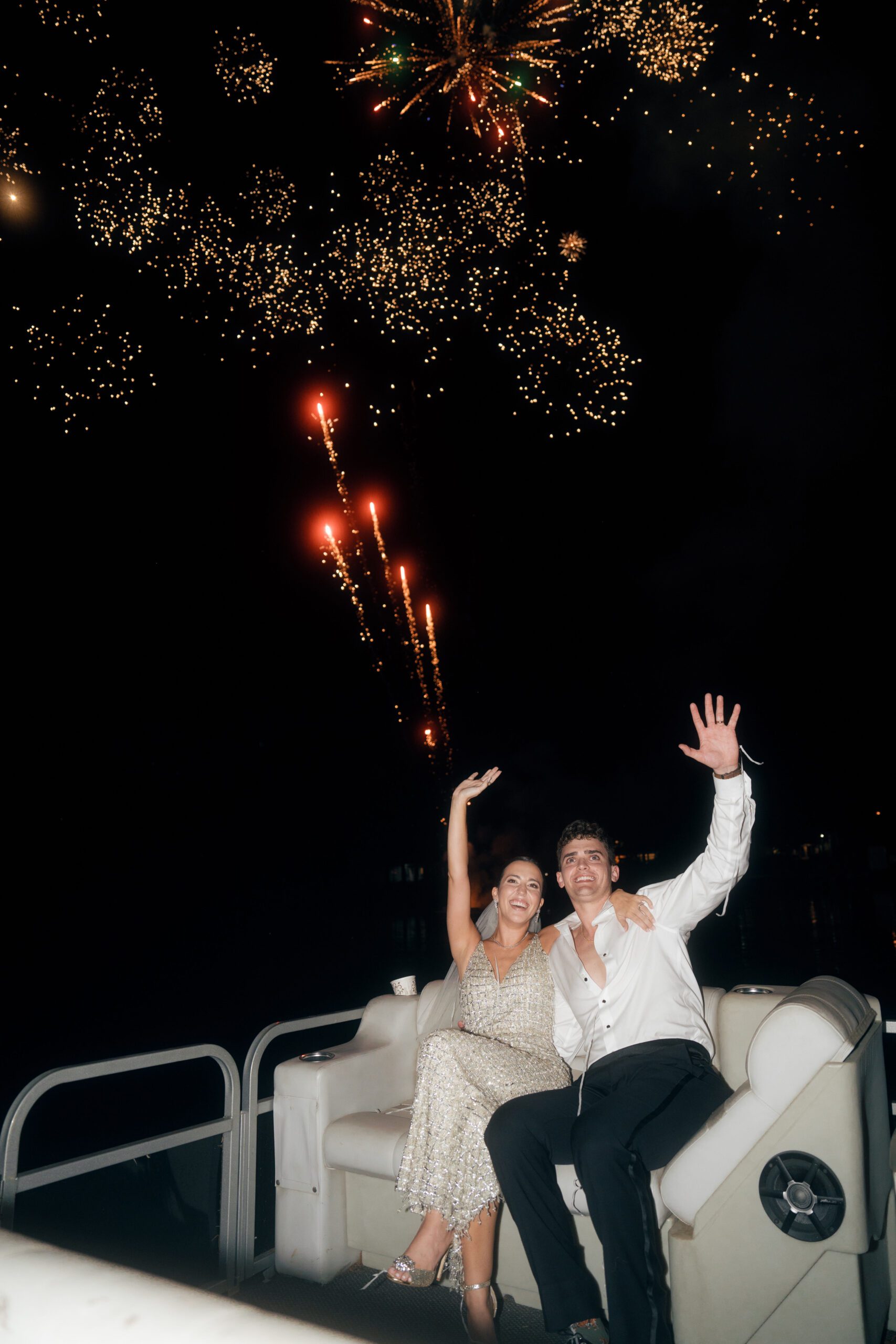 But the day went off with a hitch, and ended with a bang. “We had a seven-minute firework show as we exited on the bayou we grew up on,” she says.