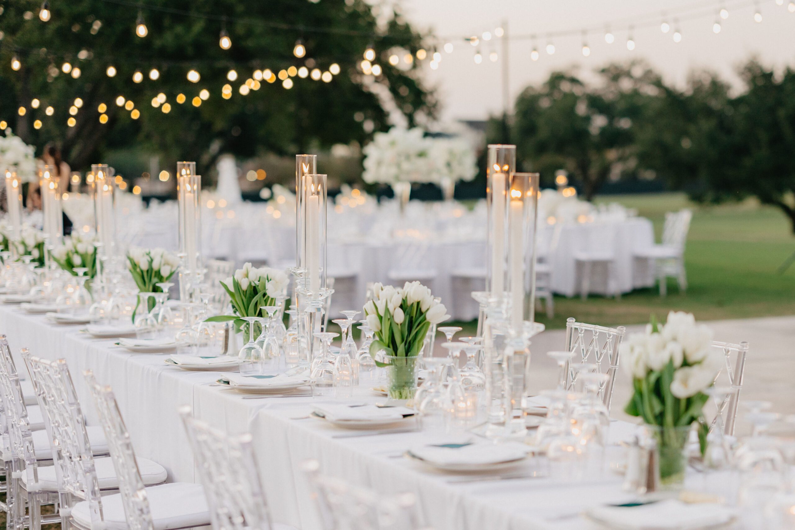 Candles bring a wow-factor to events, adding an element of romance, drama and whimsy, especially for outdoor and nighttime festivities. And for those hosting their big days at flameless venues, Truly Haute also offers high-quality, flickering LED options. “Sometimes, we can’t even tell the difference between a real candle and an LED in photos,” notes Baron.