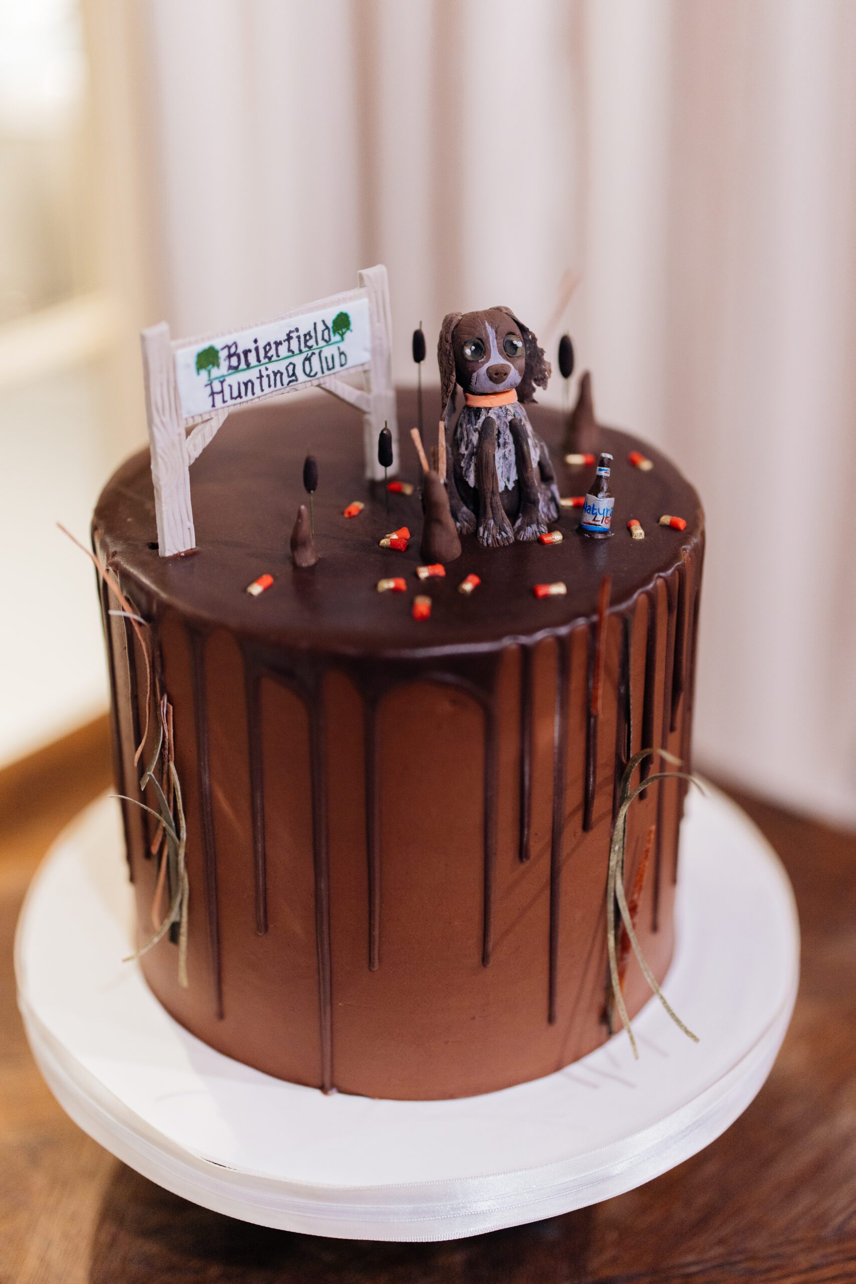 For Emma Clark’s wedding to Michael Reeves, instead of only including the traditional wedding and groom’s cake, Emma decided she also wanted a custom cake to represent her. “We put each of our dogs on top of our individual cakes,” she says. “Mine was very girly, and Michael’s had a hunting camp theme.”