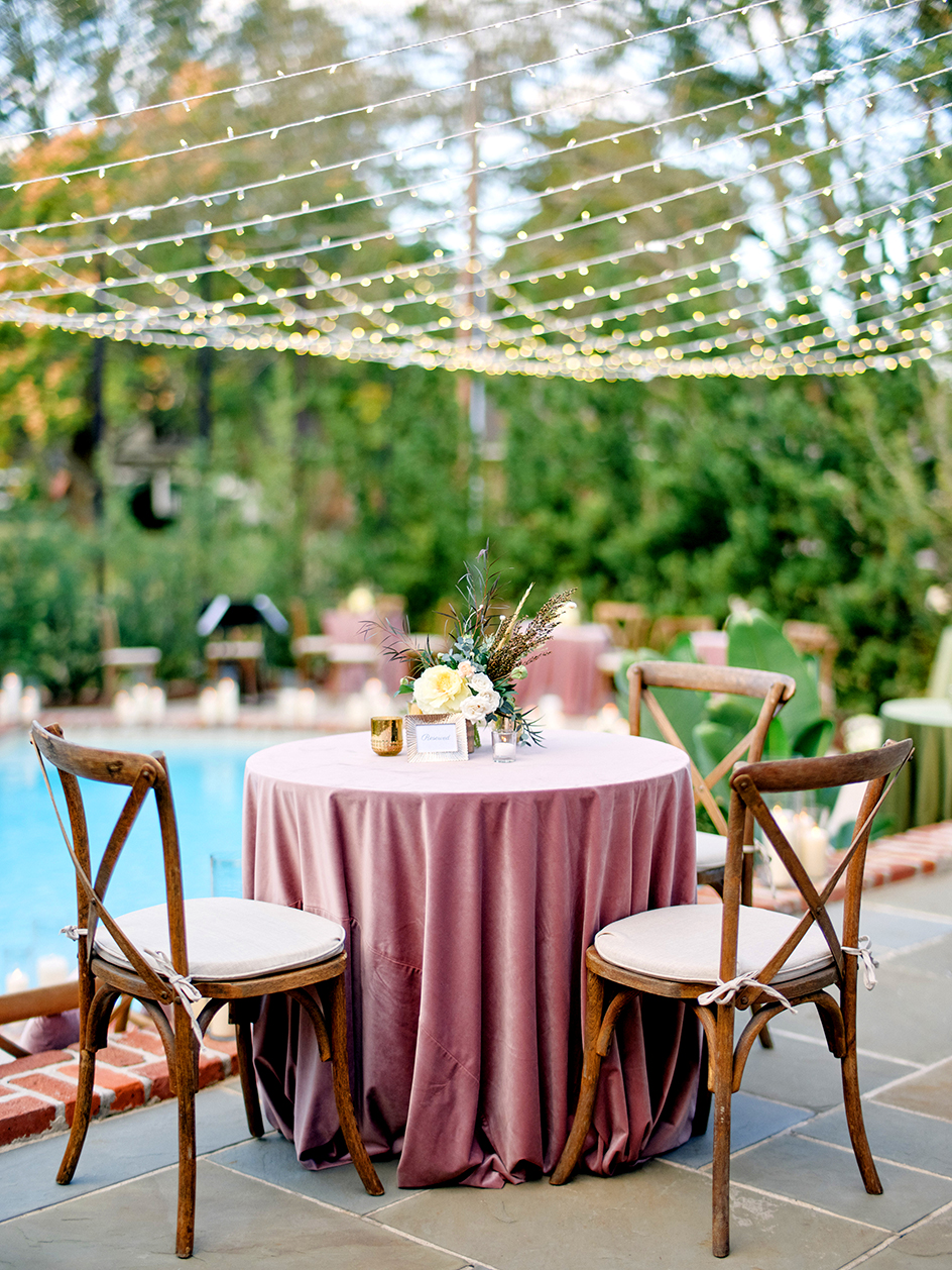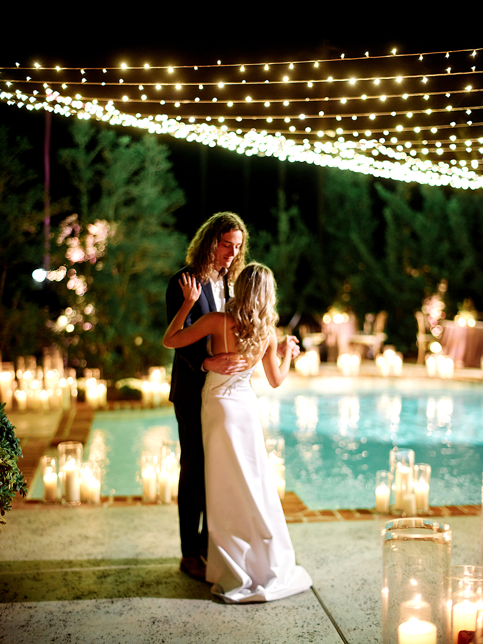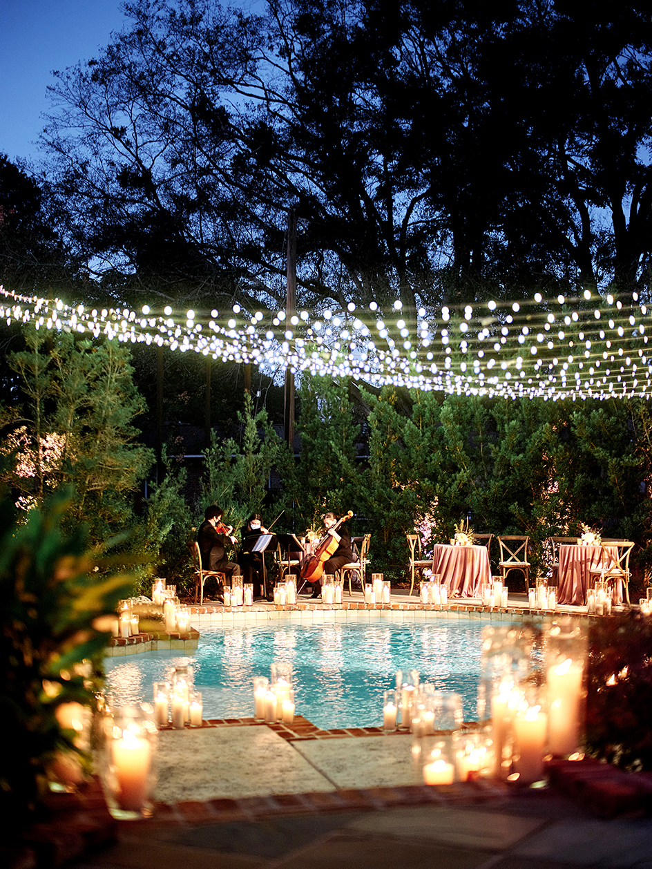 “Everyone involved said they wouldn’t have had it any other way,” says Tiffany Pilgrim of August Events, who coordinated the candlelit affair. “Lianne had her first dance in front of 50 people she really cared about. Many of her bridesmaids had grown up with her in that backyard. She wore a dress handmade by her friend Grace Chetta of Gretta Garments. It was absolutely beautiful! No one should have to look at a small wedding like some sort of consolation prize.”