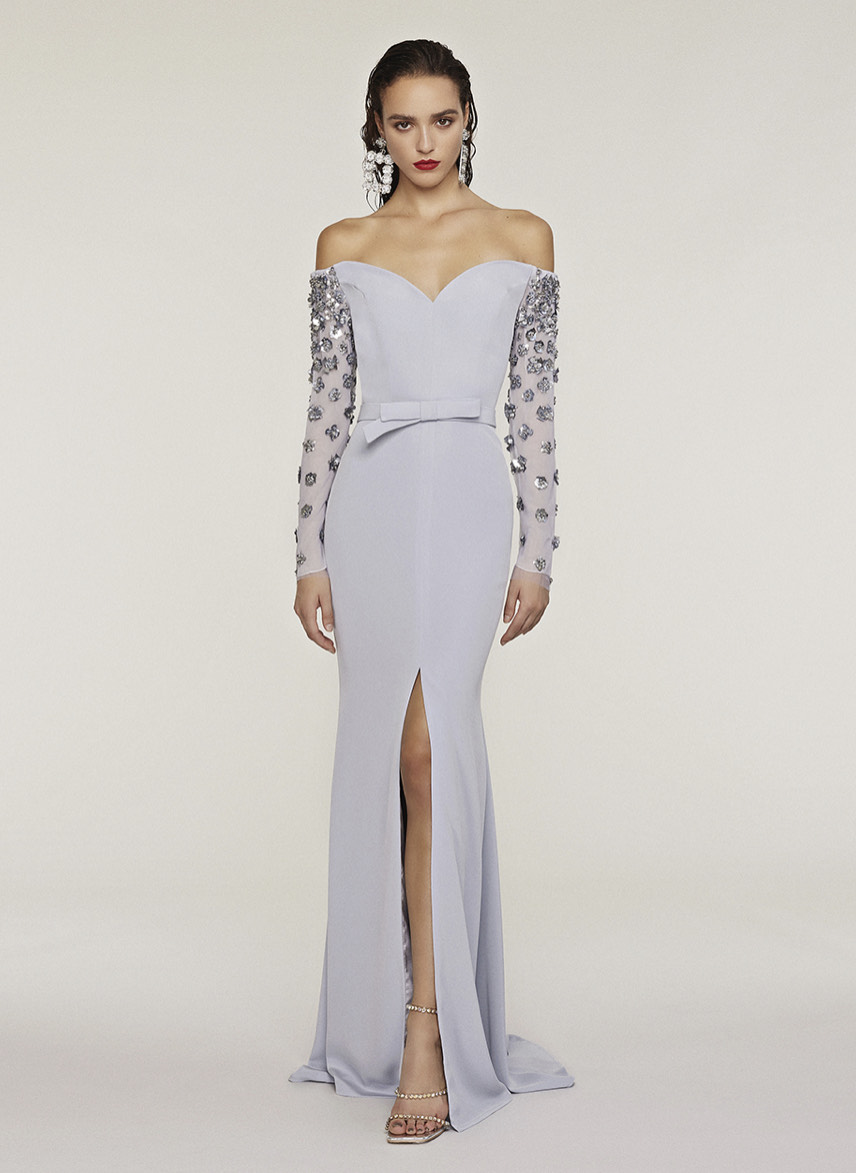 In the end, though, a timeless silhouette will get you far, and it’s the unique details added to the silhouette that will help you look chic and contemporary. And for Guillaume, this often means simple sheath silhouettes, but with popular trends like dramatic sleeves or flower appliqués along the shoulder.