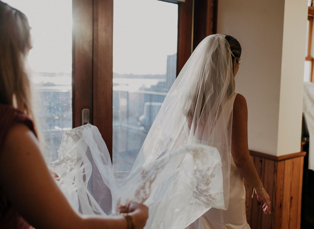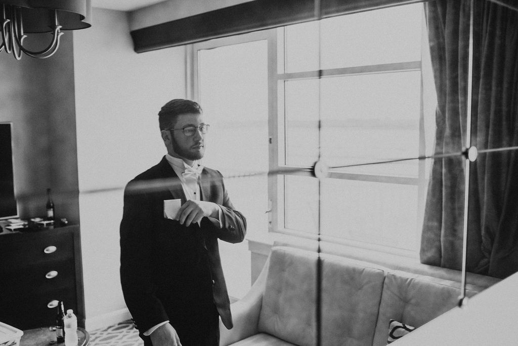 “A big thing is that you want to make sure the scenery is together,” she explains, noting that brides should consider the décor of the locale they will be getting ready in, with plain and muted reigning supreme when it comes to the pictures. “Hotels are usually pretty small, so you want to have everything cleaned up before I get there. What I always tell my brides is that Airbnbs can be a great option. They have more space and more light, which can be great when it comes to the photos.”