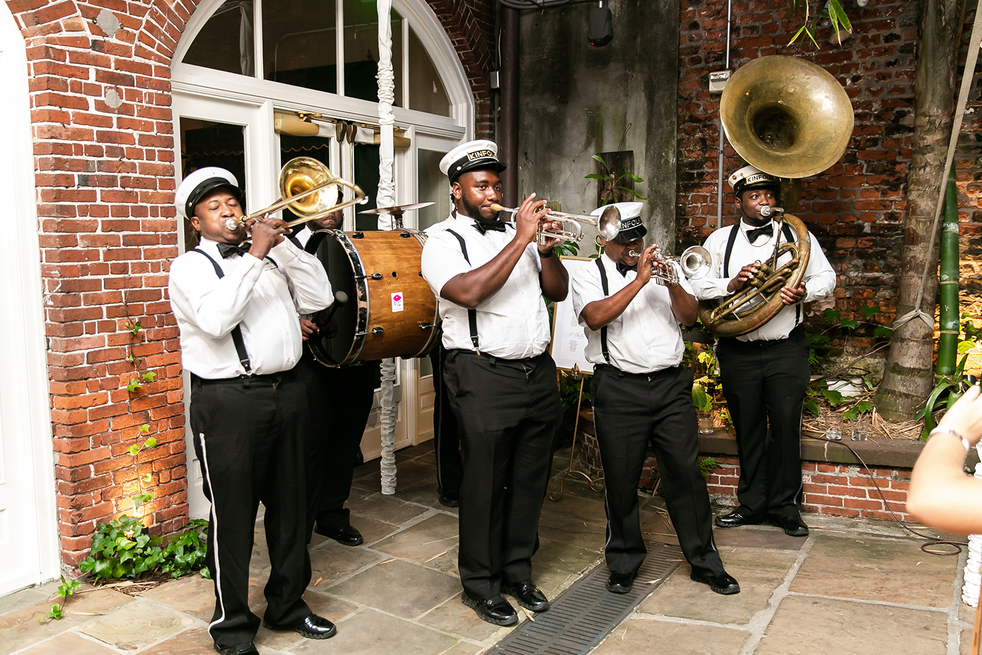 A second line led the way for a rehearsal dinner and welcome party at Brennan’s