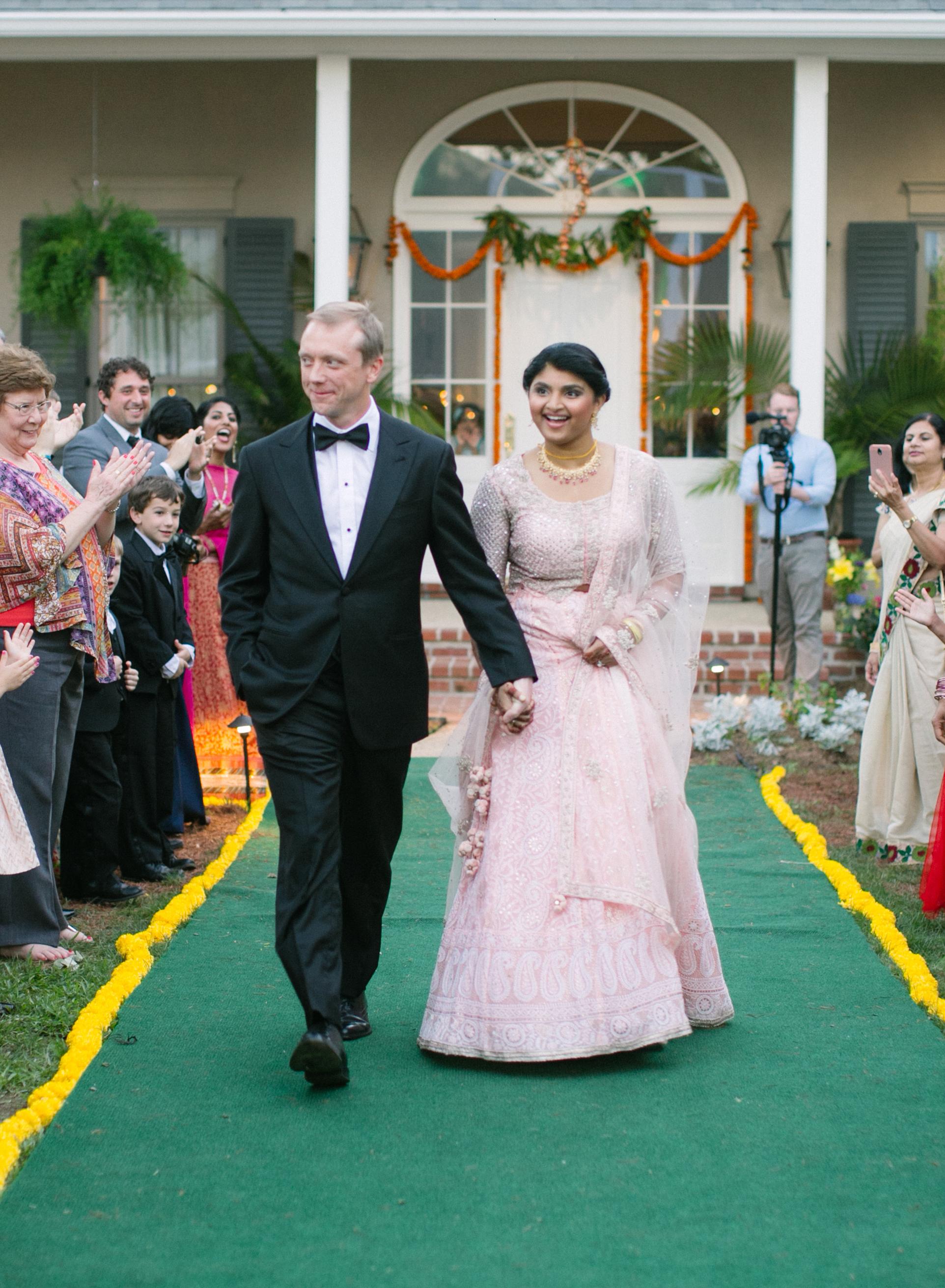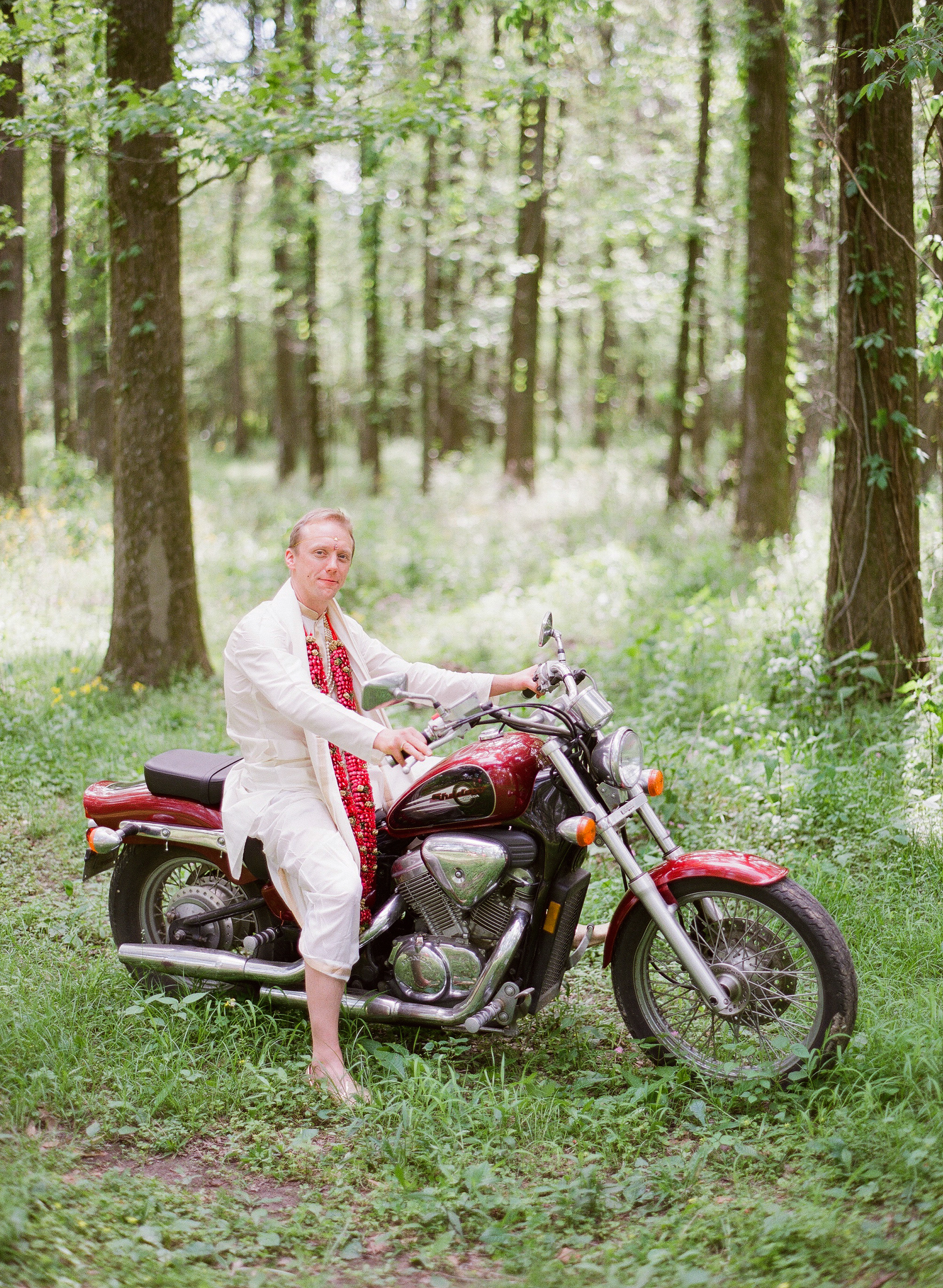 Though Indian grooms traditionally enter the wedding site on a horse or elephant, this couple opted to give a nod to their first date, a motorcycle ride through rural south Louisiana, by having J.W. ride up on his motorcycle. “We thought this would be a fun way to extrapolate from that tradition but at the same time add a bit of our personal history and flair,” Meghana says.