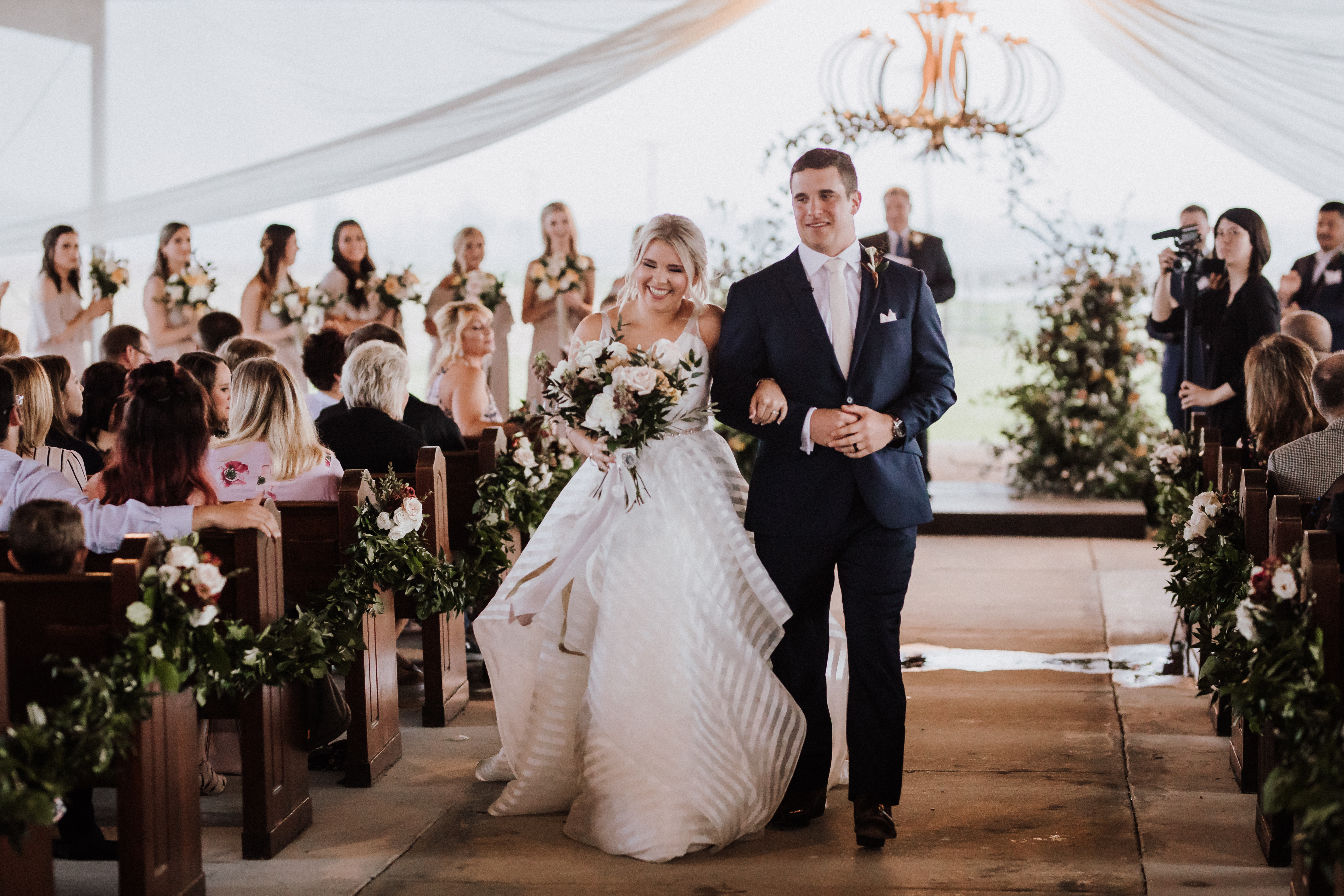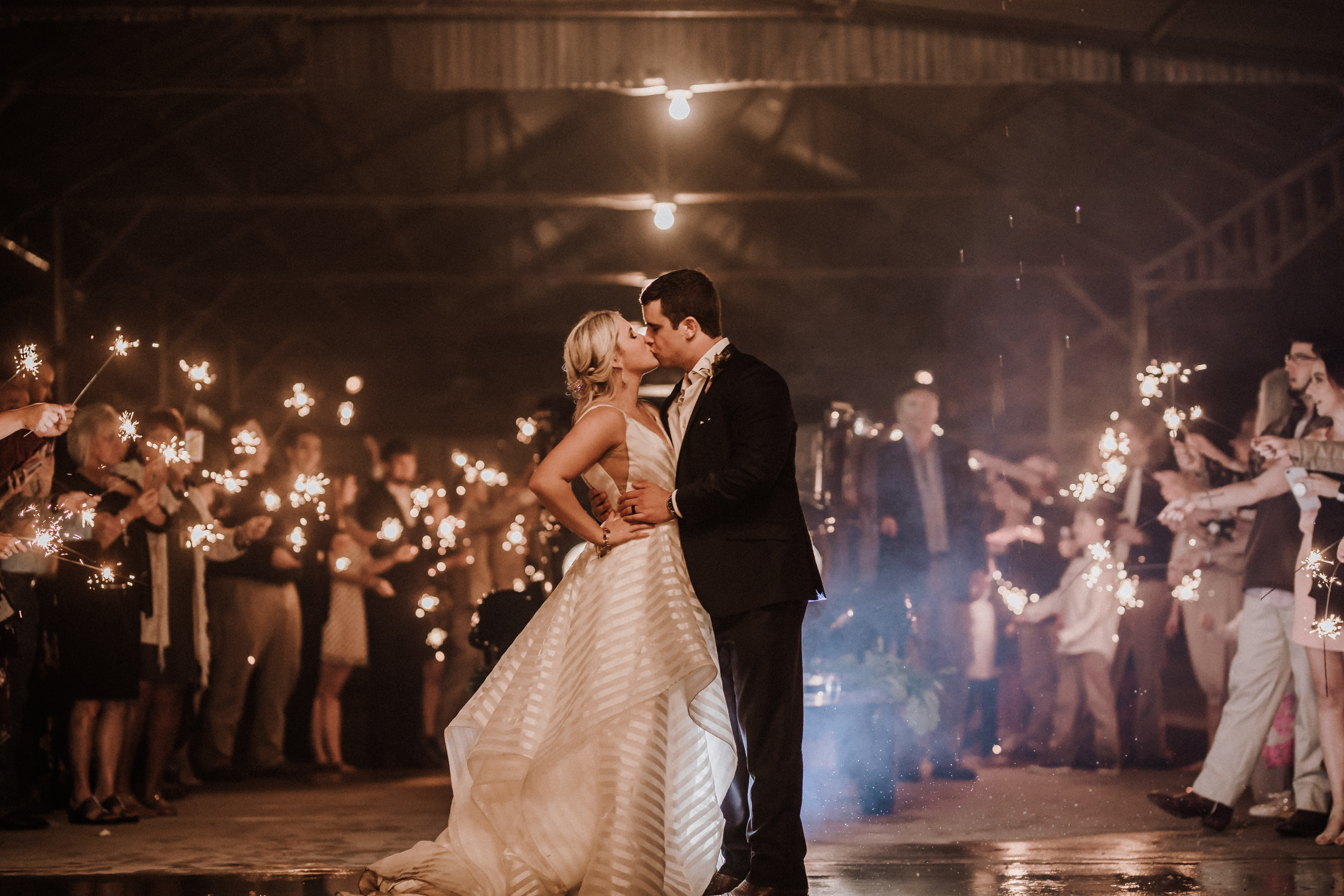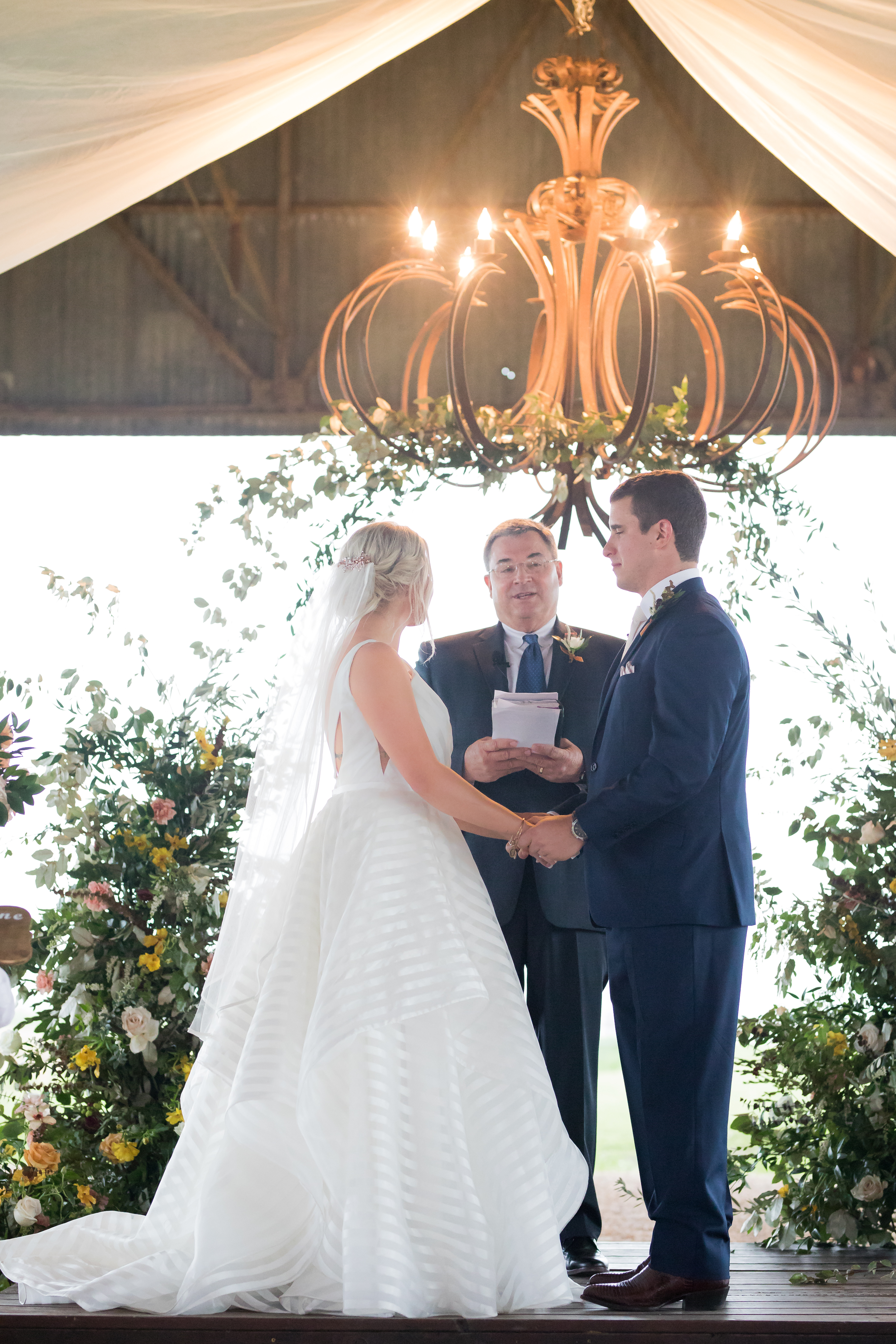 And while the storm raged outside the couple’s rustic venue, Alex explains that a little bit of water couldn’t stop the celebration.