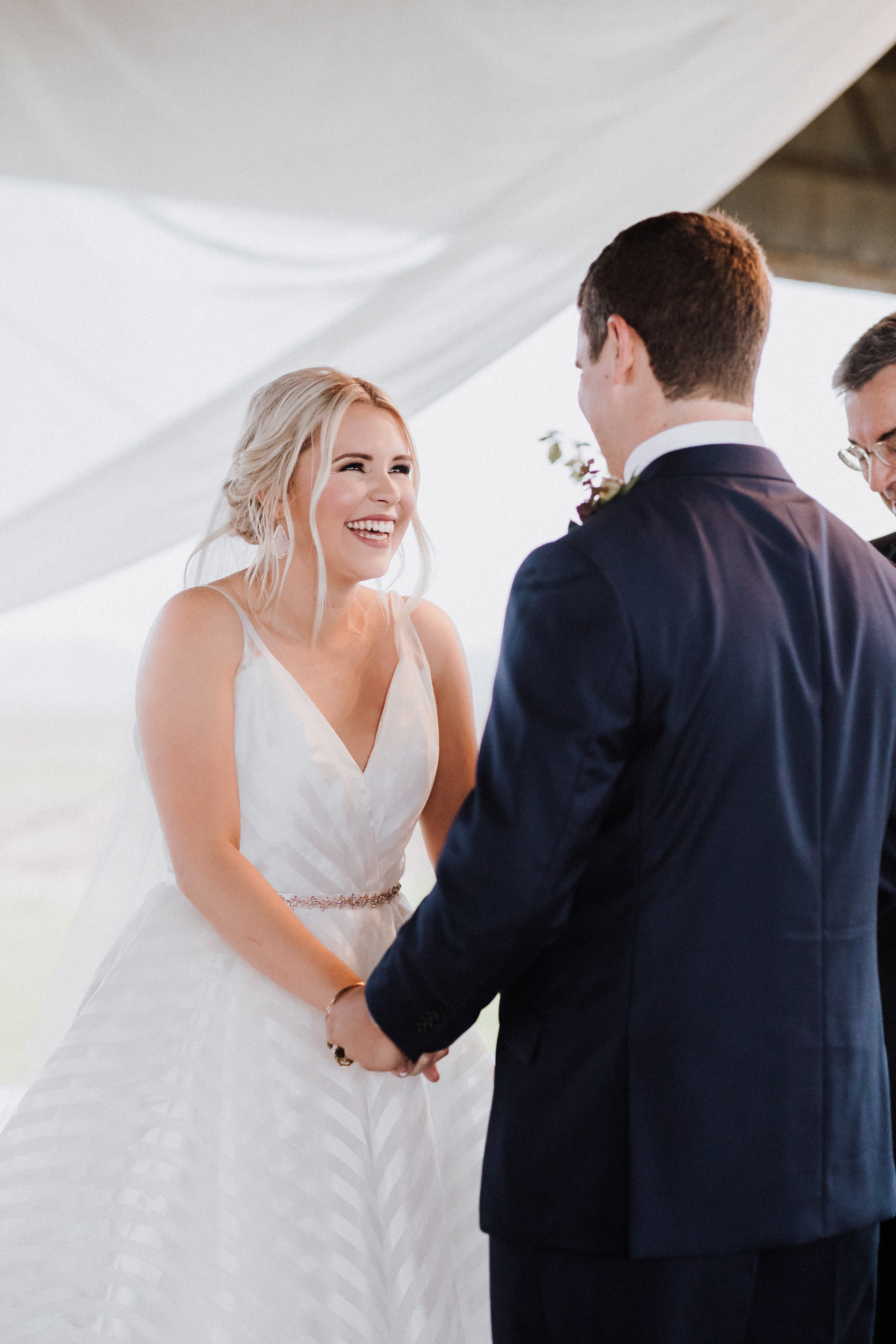 “The rain held off until the reception was really underway and then the sky fell,” she recalls. “But, our smiles never faded, the music never stopped and the storm definitely didn’t rain on our parade!”