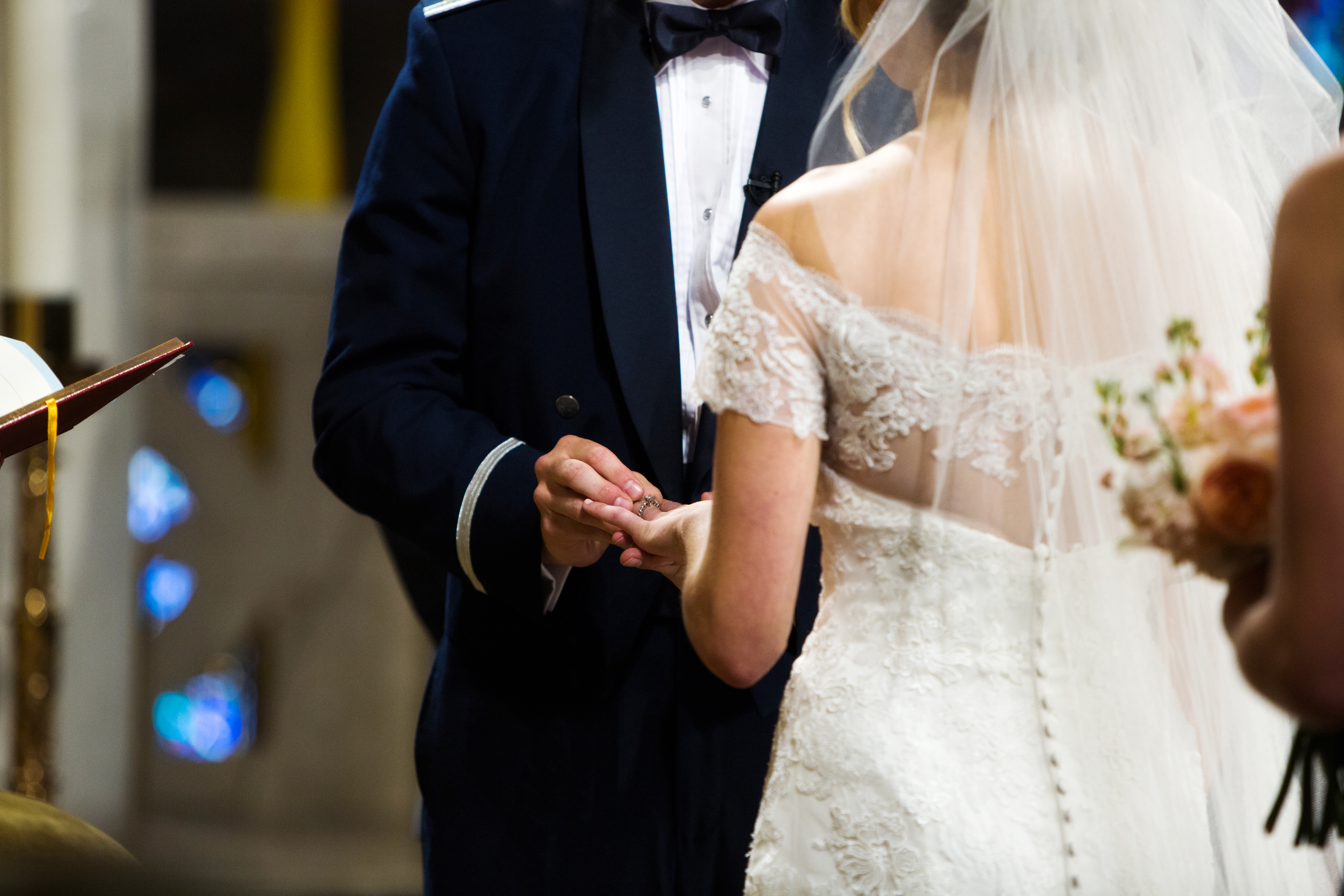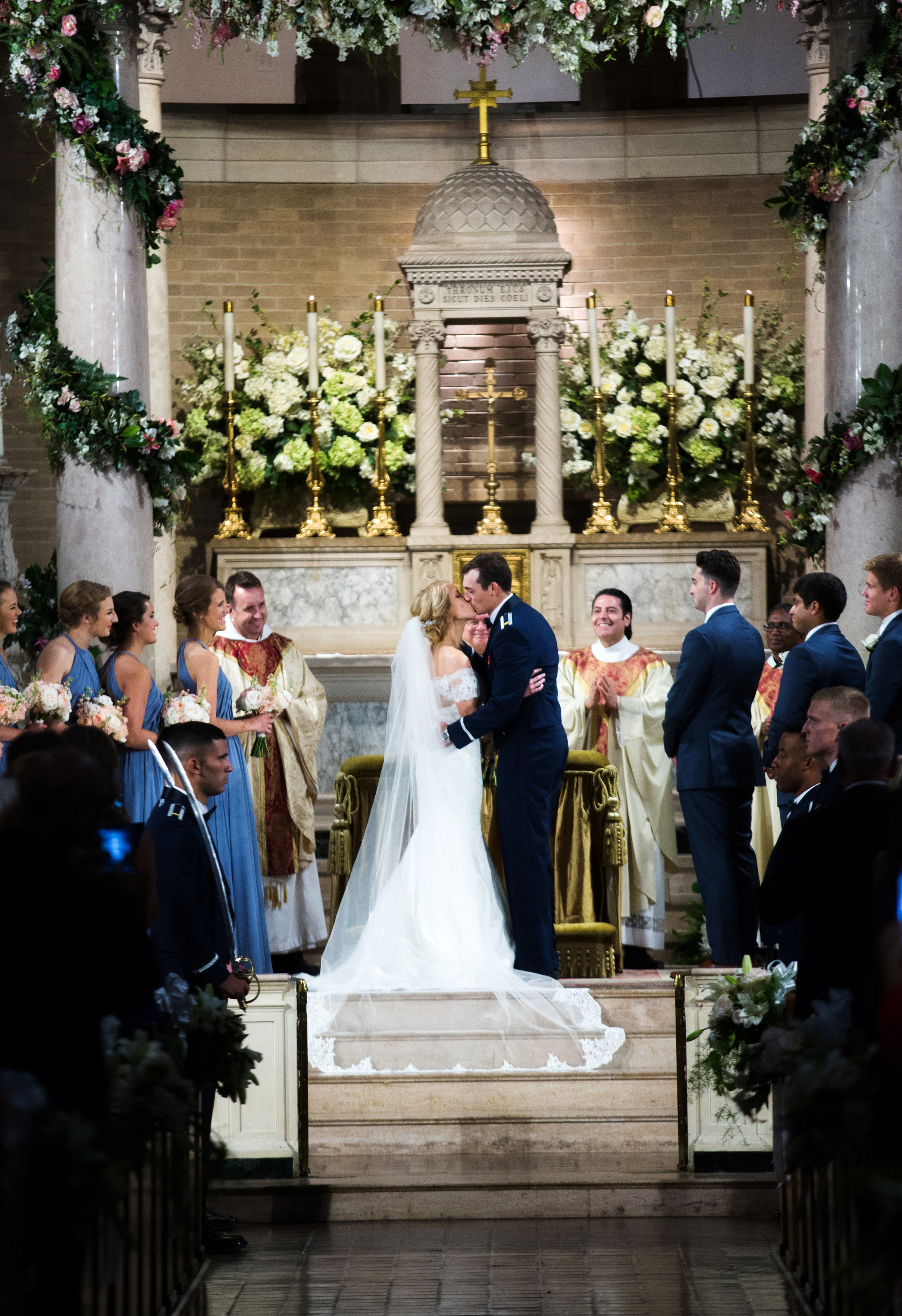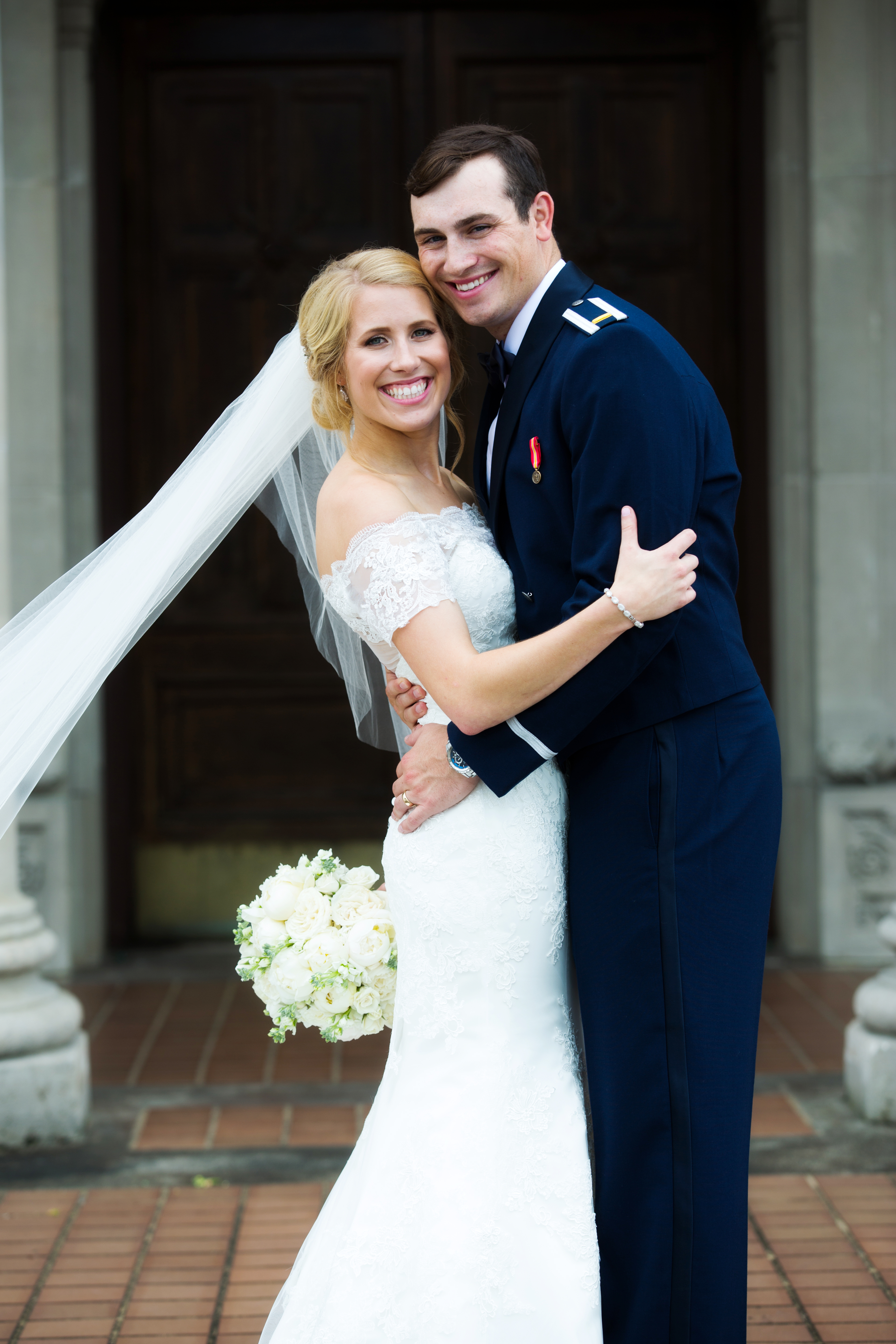 “Jack and I met during my sophomore year at Auburn University at a church retreat,” says Annie. “Jack is from Columbus, Ohio and came to Auburn with the ROTC program to be an officer in the Air Force. After dating for two years, he proposed at his all-boys Catholic high school chapel, where we celebrated a private Mass together.”