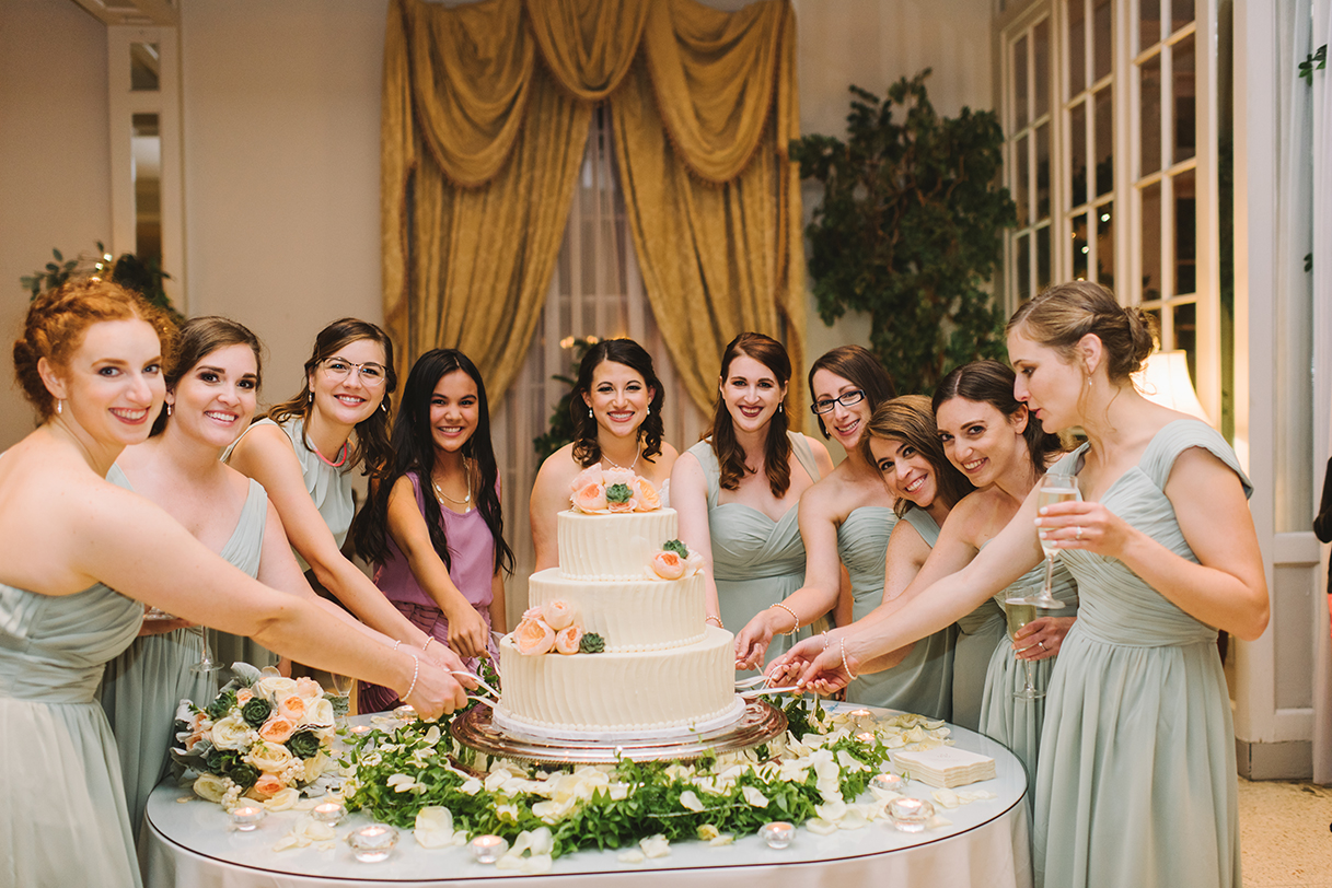 Bridesmaids’ dresses: Bill Levkoff, Bella Bridesmaids