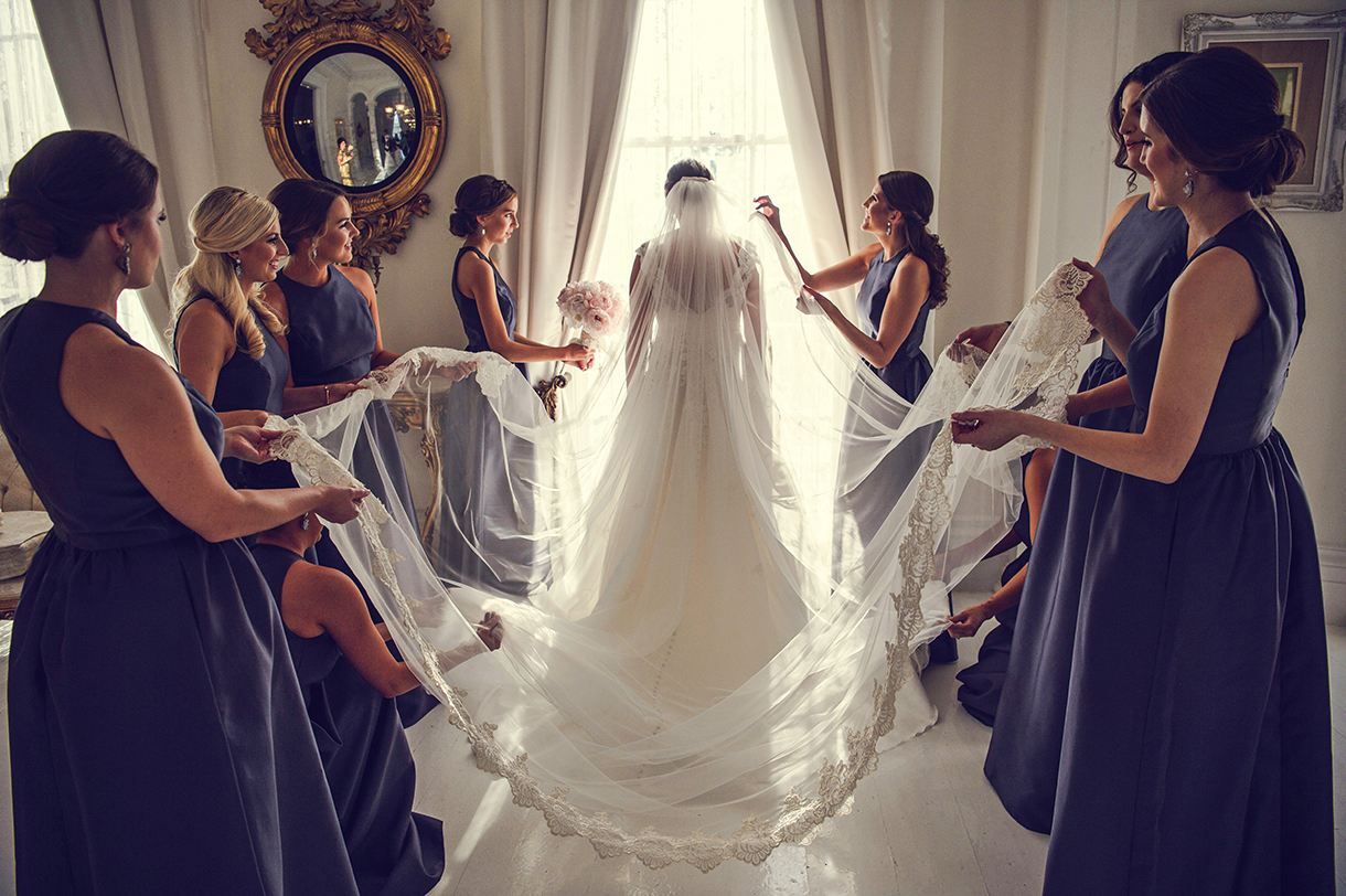 Bridesmaids’ dresses: Alfred Sung