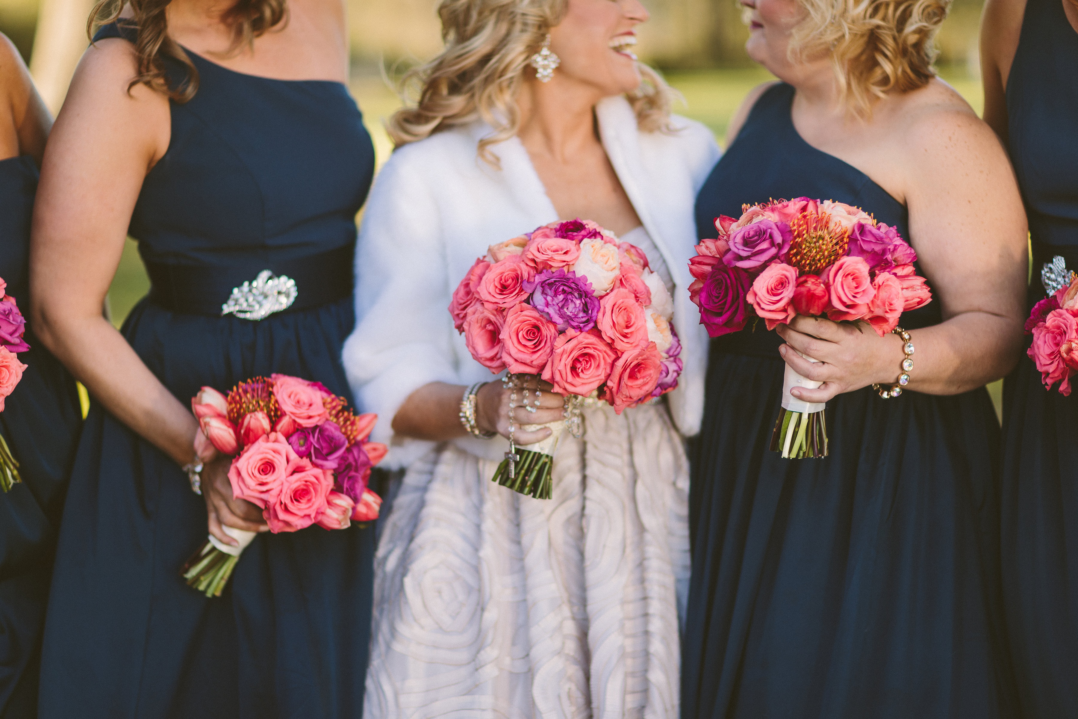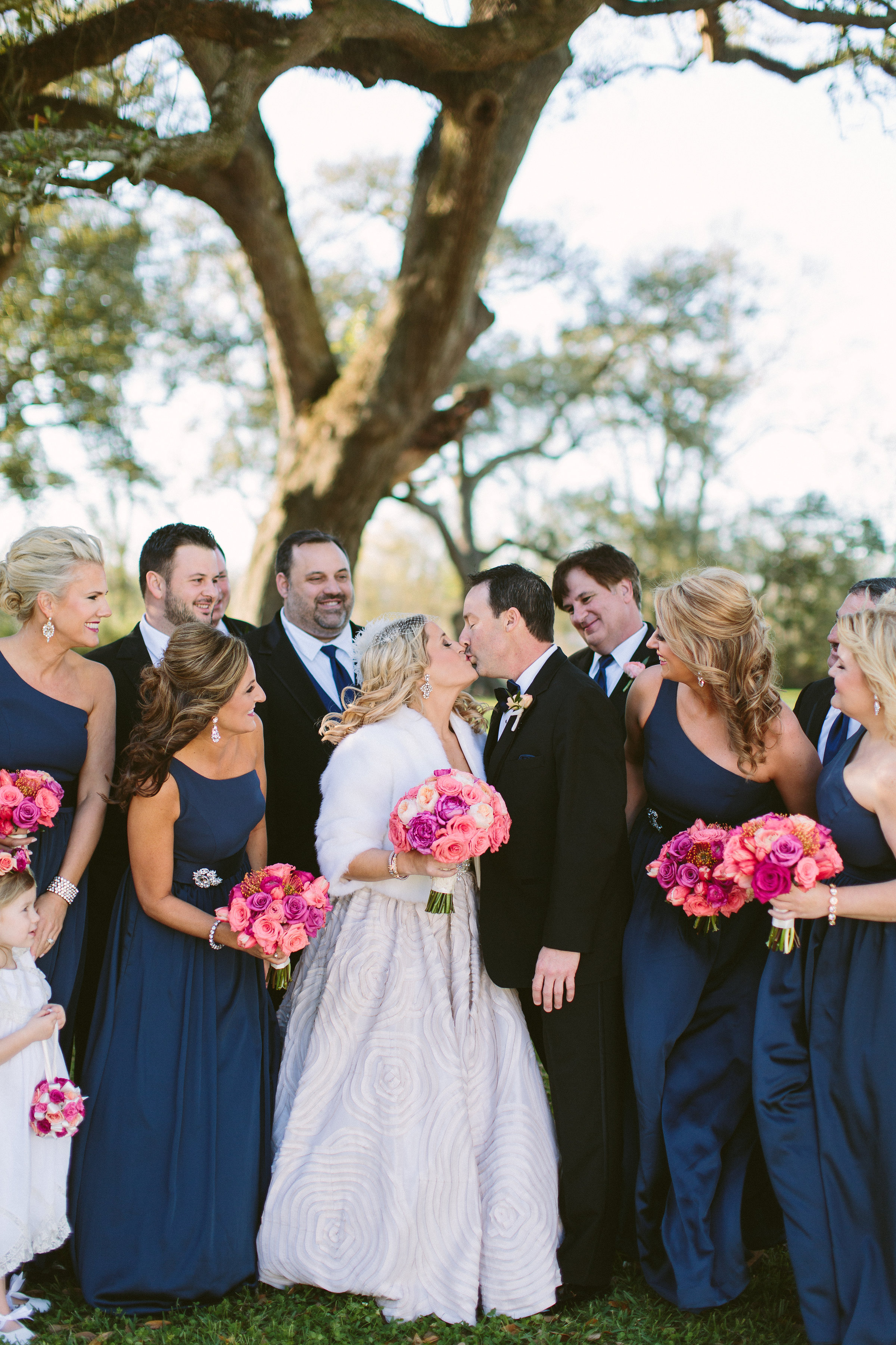 Bridesmaids’ dresses: Vera Wang, David’s Bridal