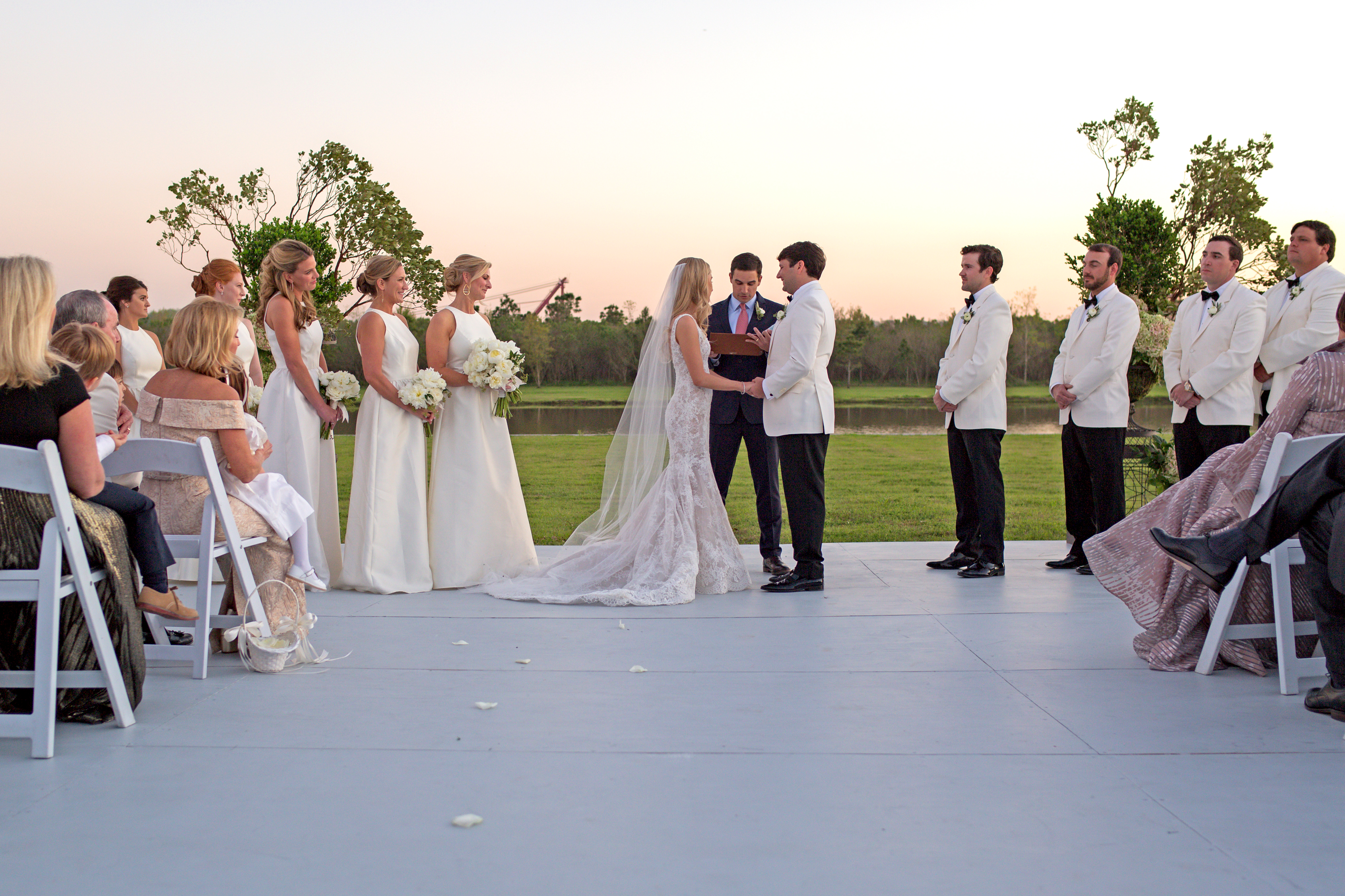 “Because we live in Baton Rouge, where I’m from, we thought it would be special to marry in Houma, where Mason is from,” says Selby. “We decided to have our ceremony and reception on a family property that is along a slip of water leading to the Intracoastal Canal.”
