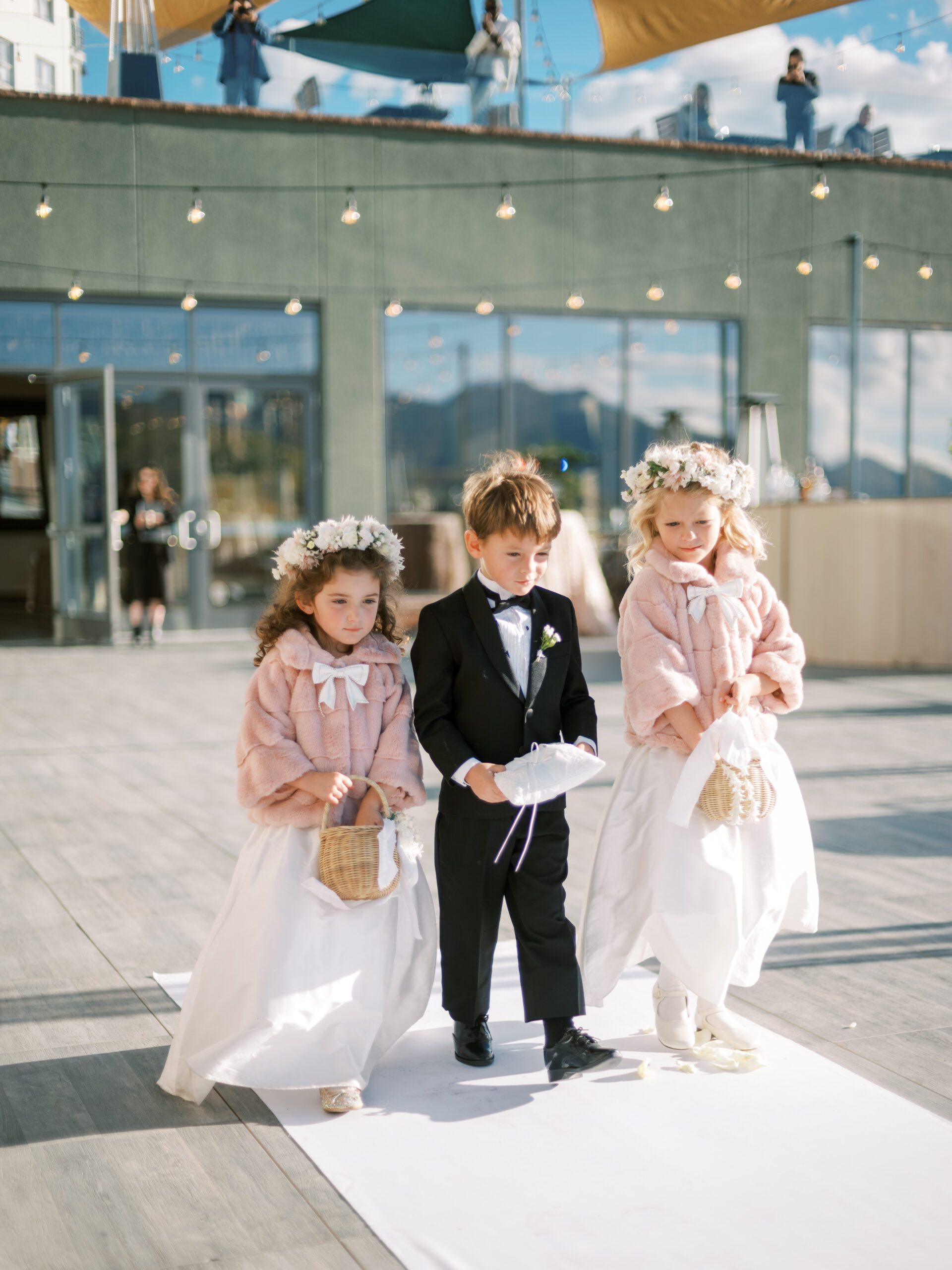 A wedding ceremony just wouldn’t be complete without a toddler picking his nose as he stumbles down the aisle or a little girl bashfully forgetting to toss any of the petals from her basket. It’s the mishaps that make these moments memorable. However, just because perfection isn’t the goal doesn’t mean brides shouldn’t plan for it. From the outfits to how they’ll make their way down the aisle, there’s so much to consider. Here’s our simplified guide to the pint-sized members of the wedding party.