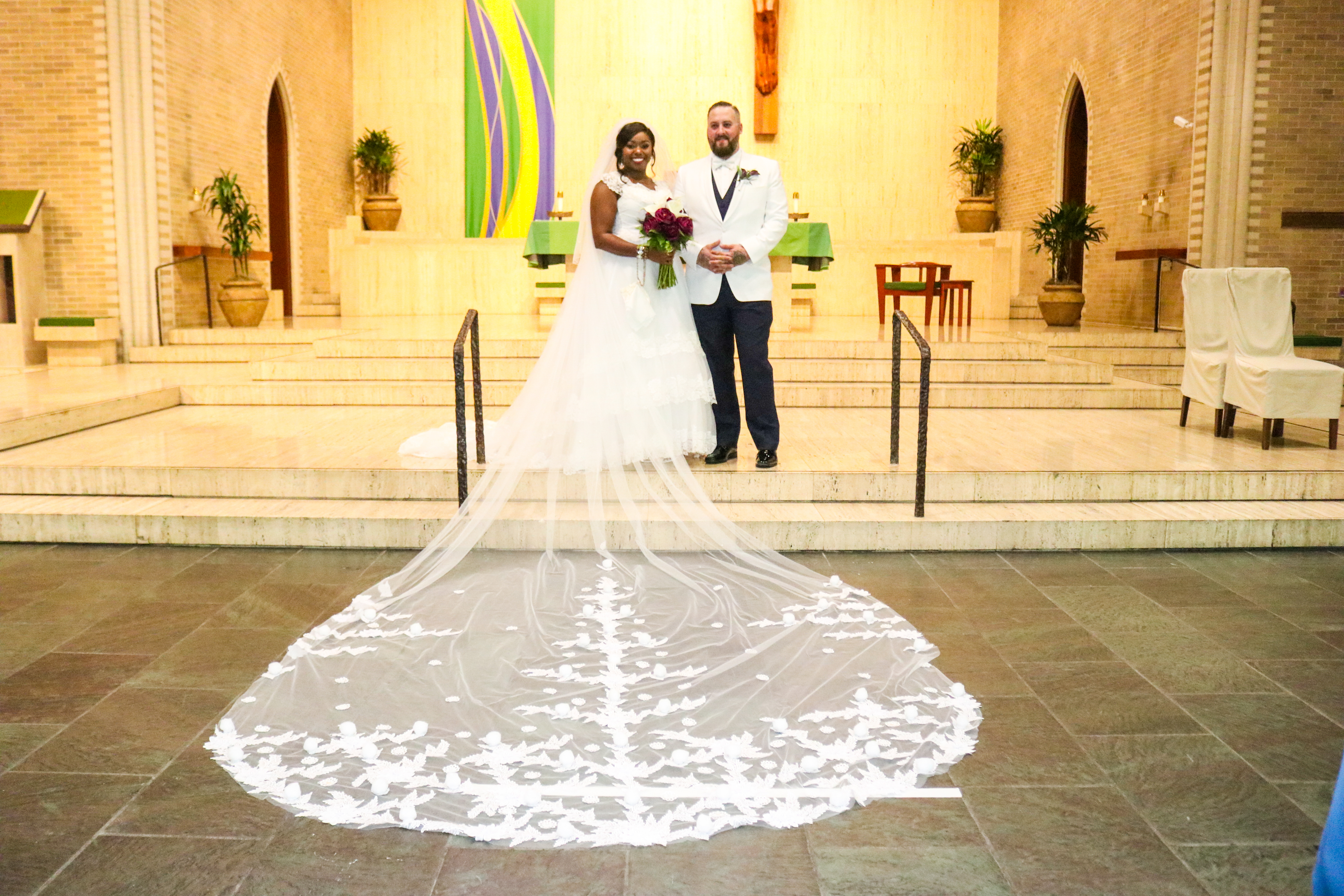 “We originally chose April 18 and I remember telling my mother that I researched and found that nothing would be going on that weekend. Well, I was correct. Absolutely nothing was going on that weekend due to COVID-19,” Jamie says. “My mom is the ultimate planner and she had everything ready to go by February. When it became apparent that we would have to postpone, we chose June 27, prayed about it and took the leap of faith. Our day was absolutely perfect with perfect weather, perfect social distancing and perfect masks. Everyone had a beautiful and memorable time.”