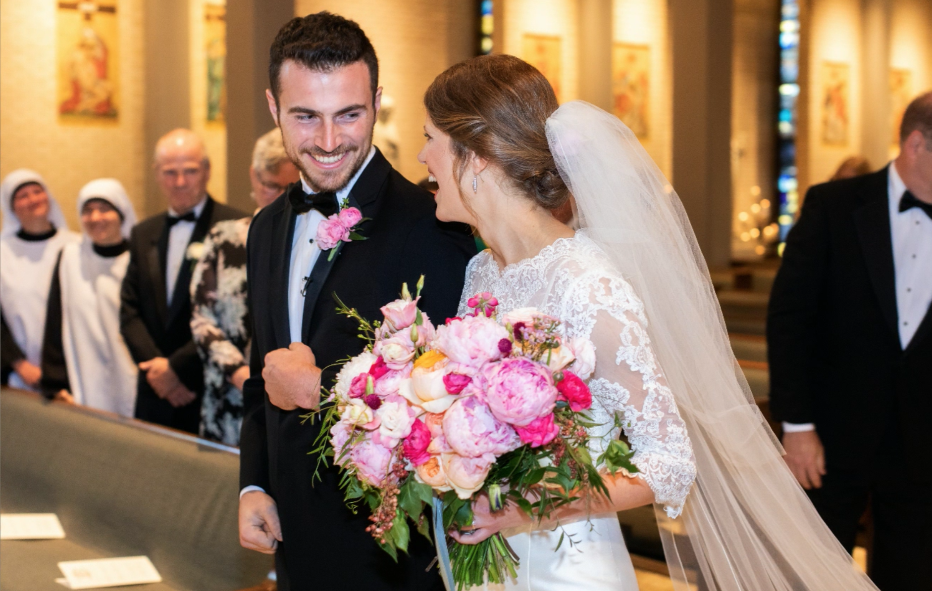 “While COVID-19 definitely slimmed down #philsbigfatpeekwedding, it also helped put our nuptials into perspective and allowed us to focus on the most important aspect of the wedding: beginning our marriage,” says Kathleen. “Our COVID wedding was an unexpected—and at times, very stressful—blessing, especially since Emily Post never wrote a chapter on etiquette during a pandemic. We often joked that COVID was the best marriage prep we could have received since it allowed us to grow in patience and surrender control, two skills necessary for marriage.”